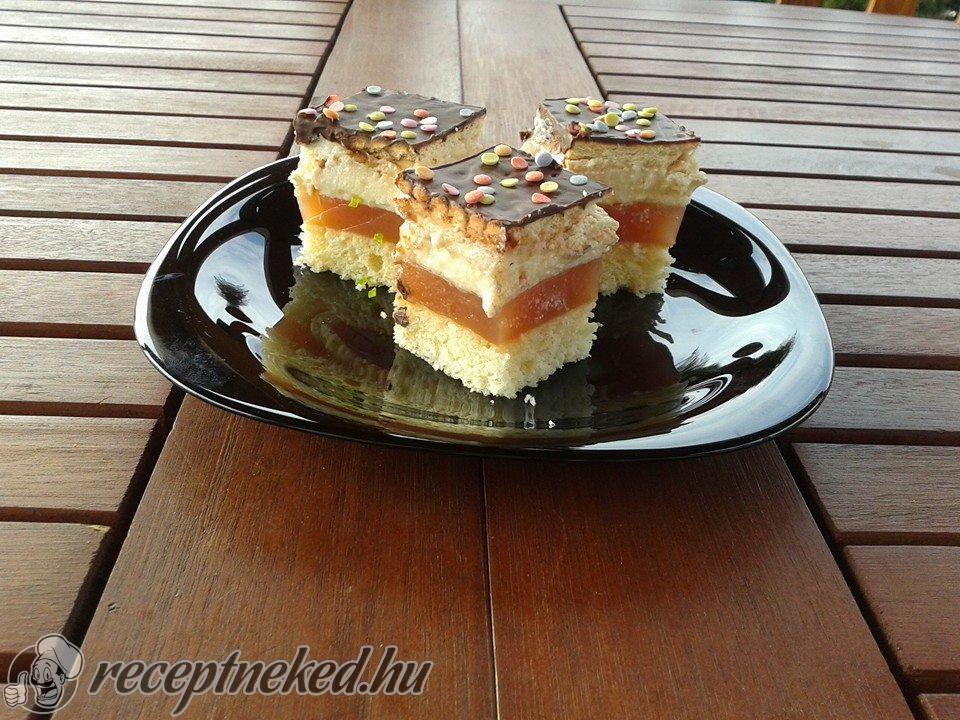 Tészta: A sütőt előmelegítjük 180 fokra, alsó-felső sütéssel. A tepsit (21*36 cm) kivajazzuk és lisztezzük, majd hűtőbe tesszük, amíg elkészítjük a tésztát. A tojásokat szétválasztjuk. A sárgákhoz hozzáadjuk a cukrot és fehéredésig keverjük robotgéppel. Ekkor hozzáadjuk a lisztet és ezzel is összedolgozzuk. A fehérjéket kemény habbá verjük, majd a sárgákhoz adjuk és habverővel óvatosan összeforgatjuk. […]