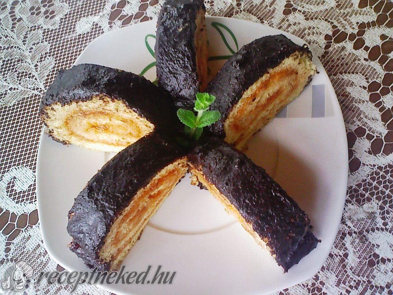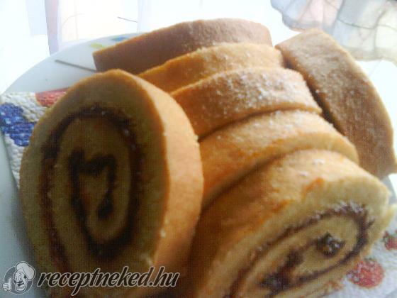 Ha megsült, úgy ahogy van papírostól egy nedves konyharubába feltekerem és így hűtöm ki. Leveszem róla a konyharuhát, lehúzom róla a papírt és a piskótát megkenem a lekvárral vagy dzsemmel és visszatekerem.