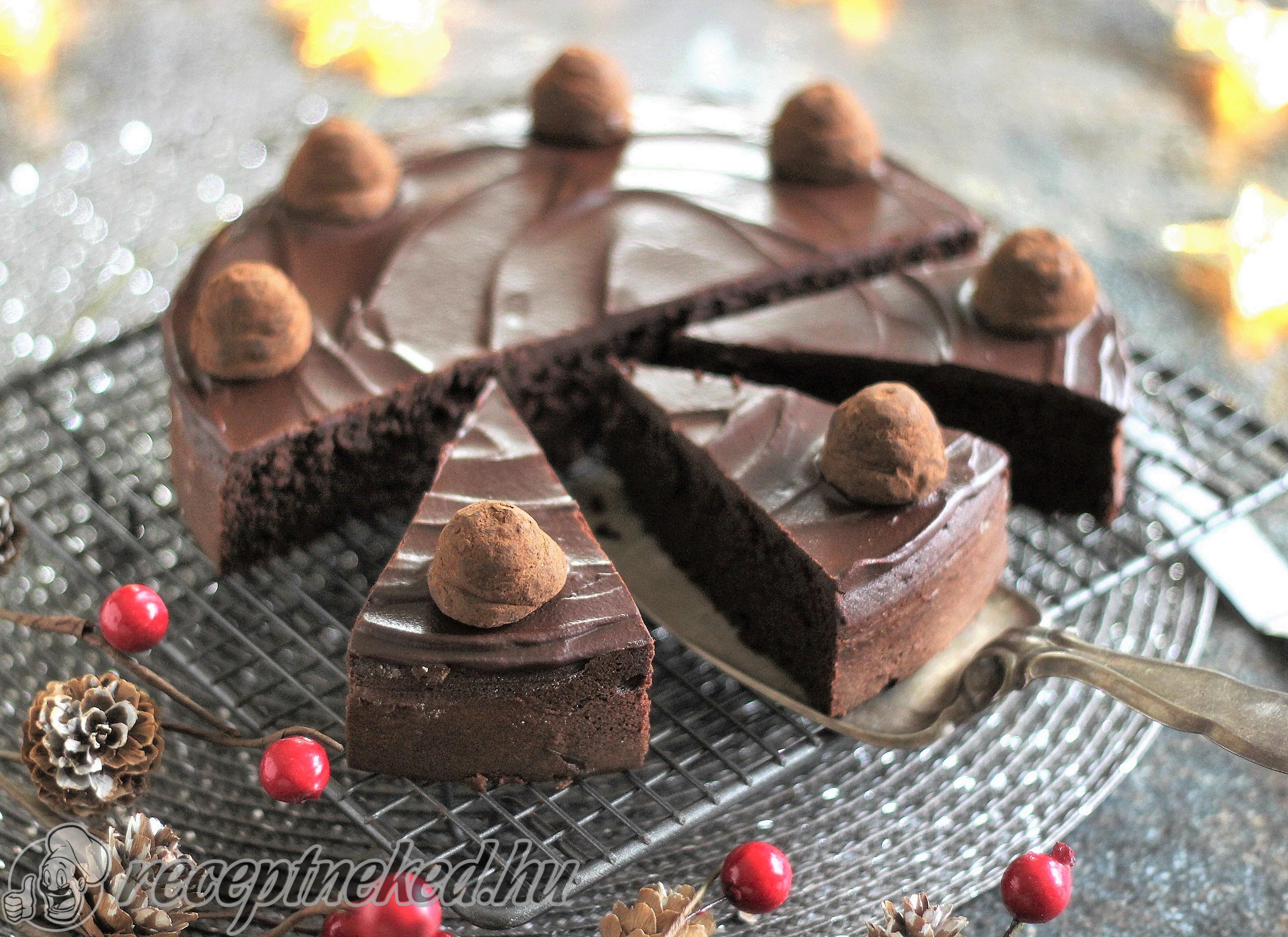 Ha kihűlt, a tetejét olvasztott csokival leöntjük és elsimítjuk.
