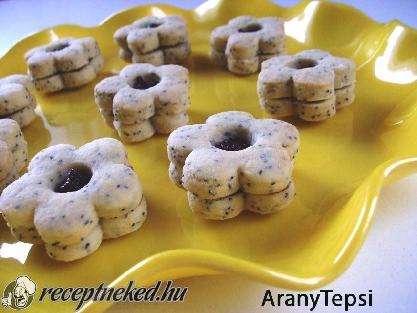 A mákos lisztben elmorzsoljuk a vajat, majd hozzáadjuk a cukrot, reszelt citrom héjat, kifacsart levét és a tojással összeállítjuk a tésztát.