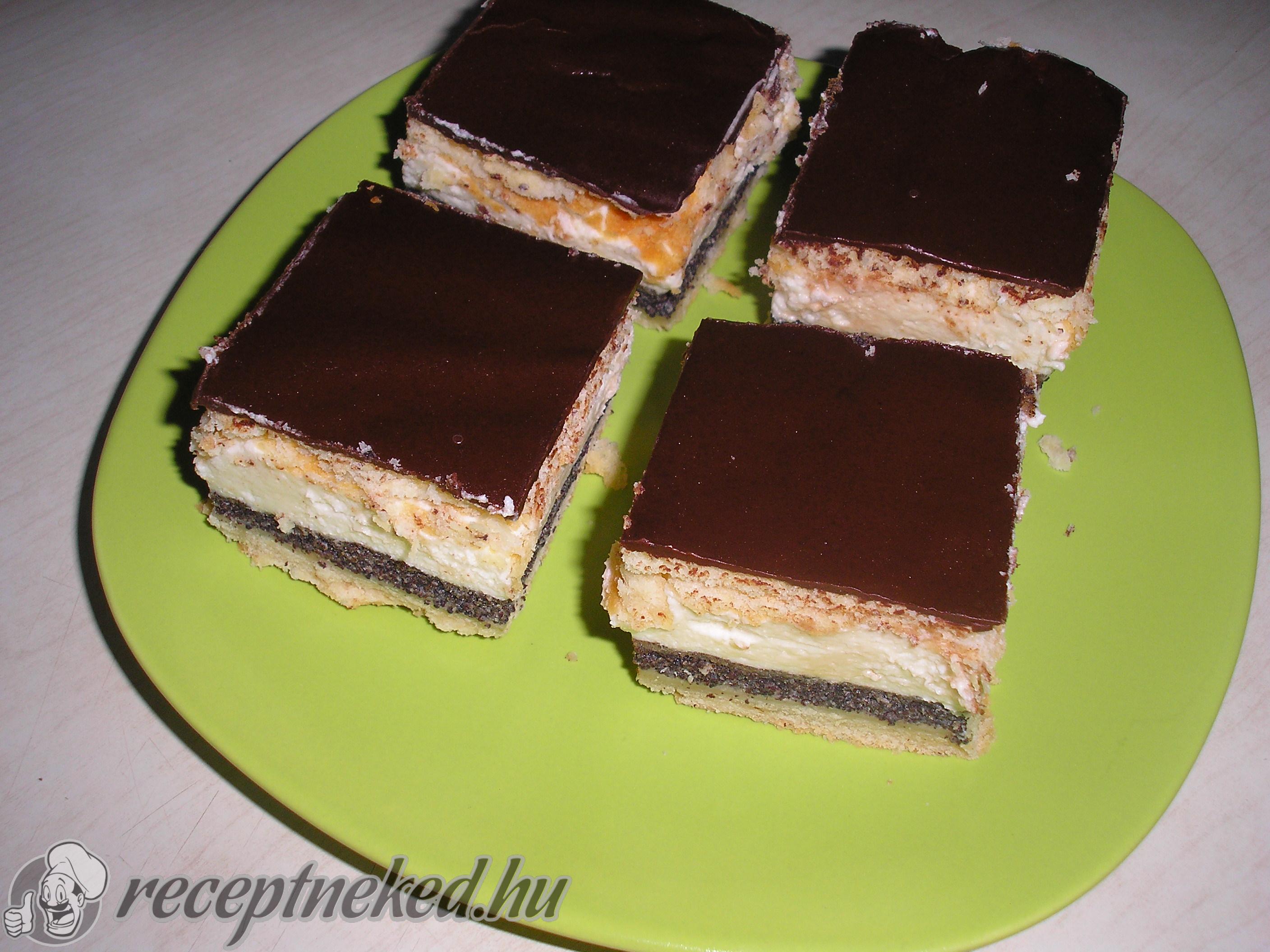 A krémet még melegen simítsuk rá az alsó mákos lapra, majd tegyük rá a másik lapot és hűtsük ki egészen. Ekkorra a krém is teljesen megszilárdul.