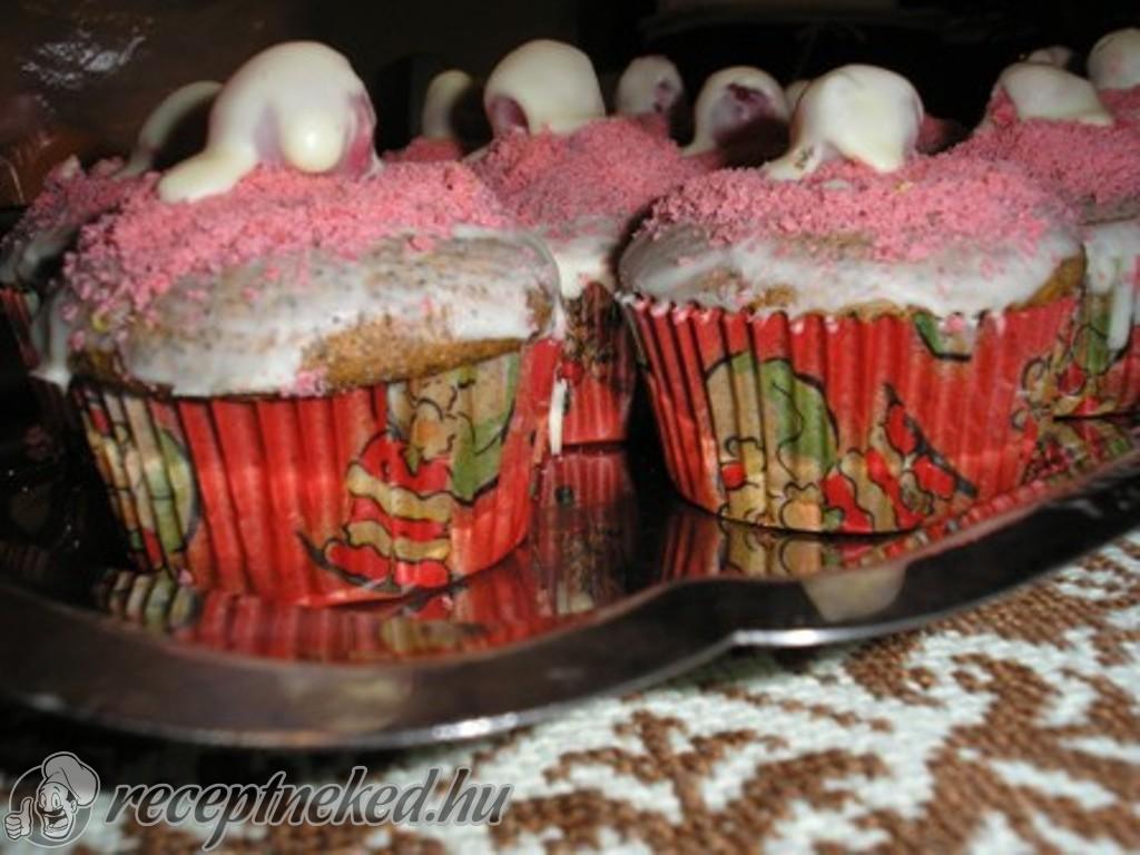 A tojást a cukorral elkeverjük, majd a többi alapanyagot hozzáadva csomómentesre keverjük a masszát. A kész masszát papírkapszlikkal bélelt vagy vajazott-lisztezett muffinformába adagoljuk. A fokmákat csak 3/4-ig töltsük. 180 fokos sütőben kb 30 perc alatt süssük készre. Tűpróbát végezzünk!