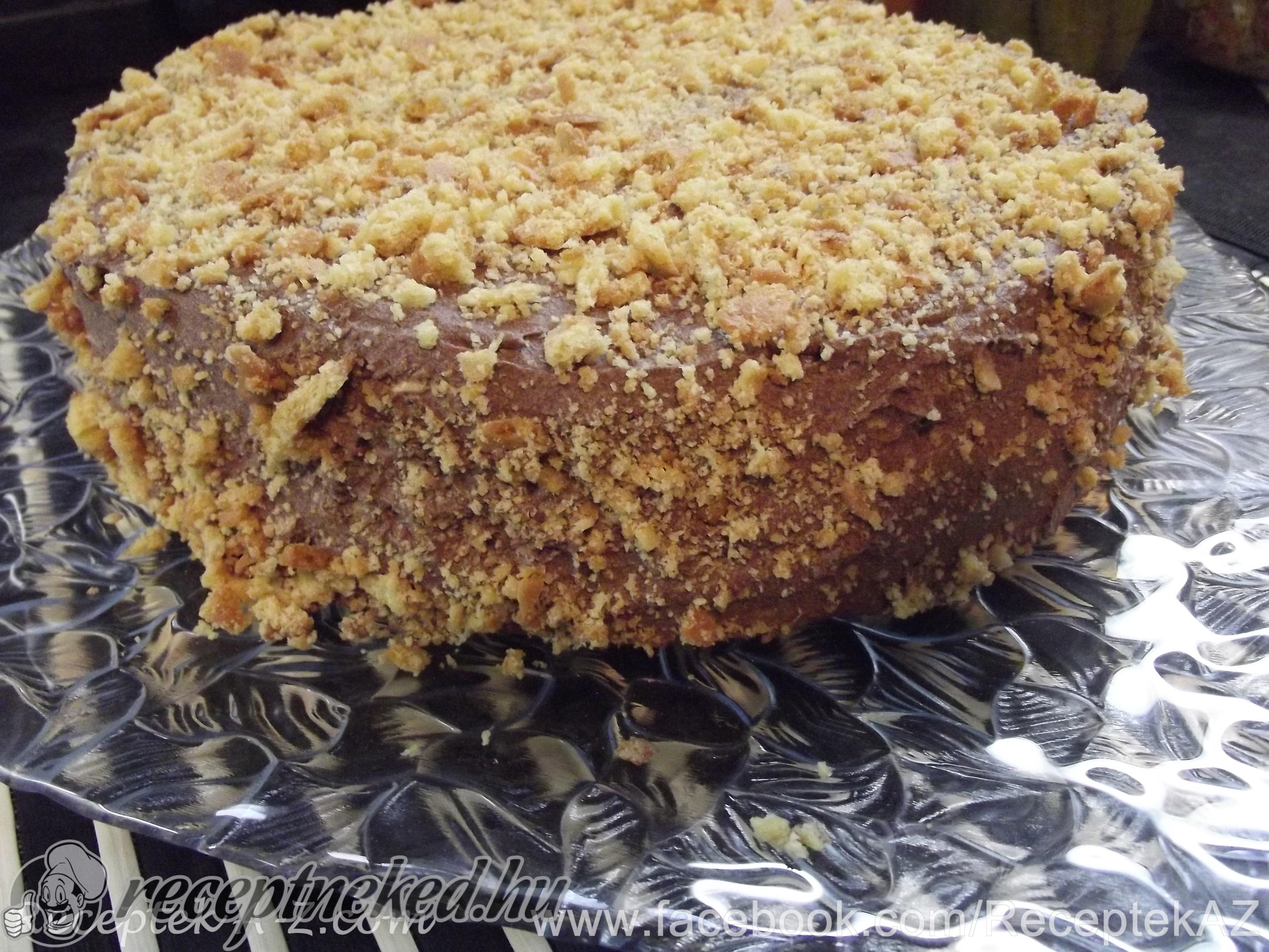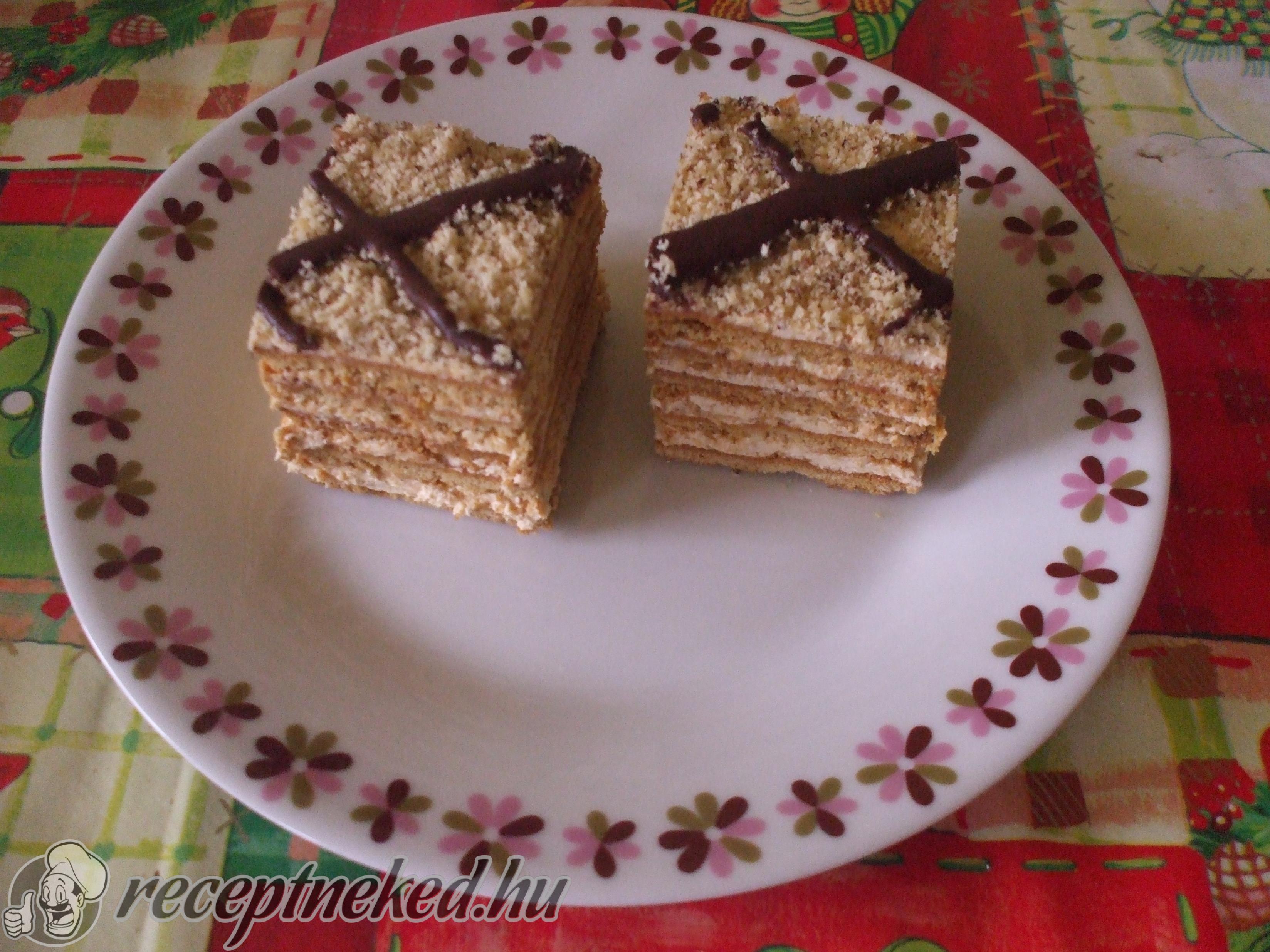 A lapokat megkenjük a diós krémmel. A végén a tetejére is teszünk egy vékony réteget. Zárásként megszórjuk darált dióval, esetleg olvasztott csokival is díszíthetjük.