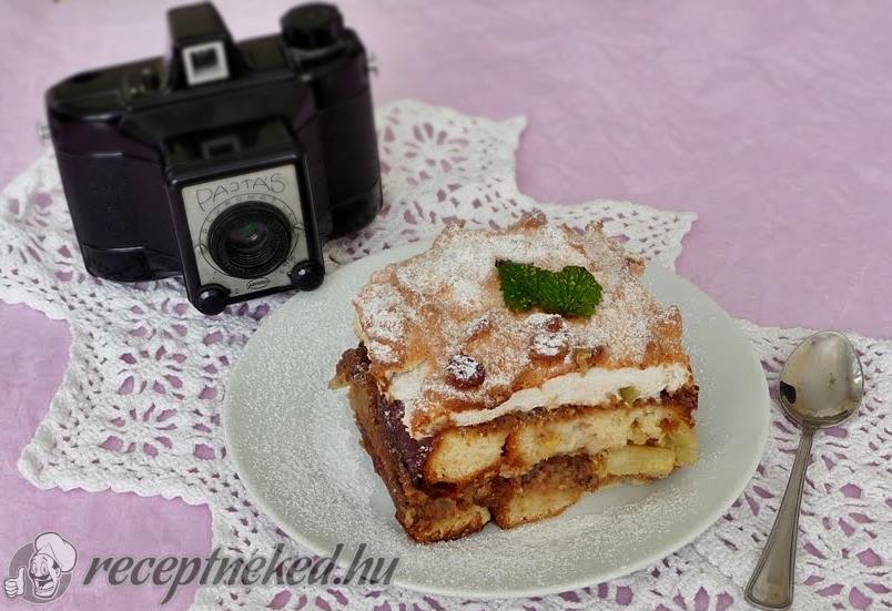 Helyezzük be előmelegített sütőbe és közepes hőmérsékleten süssük kb 20 percig, majd vegyük ki a sütőből, egyenletesen kanalazzuk rá a keményre felvert tojáshabot.