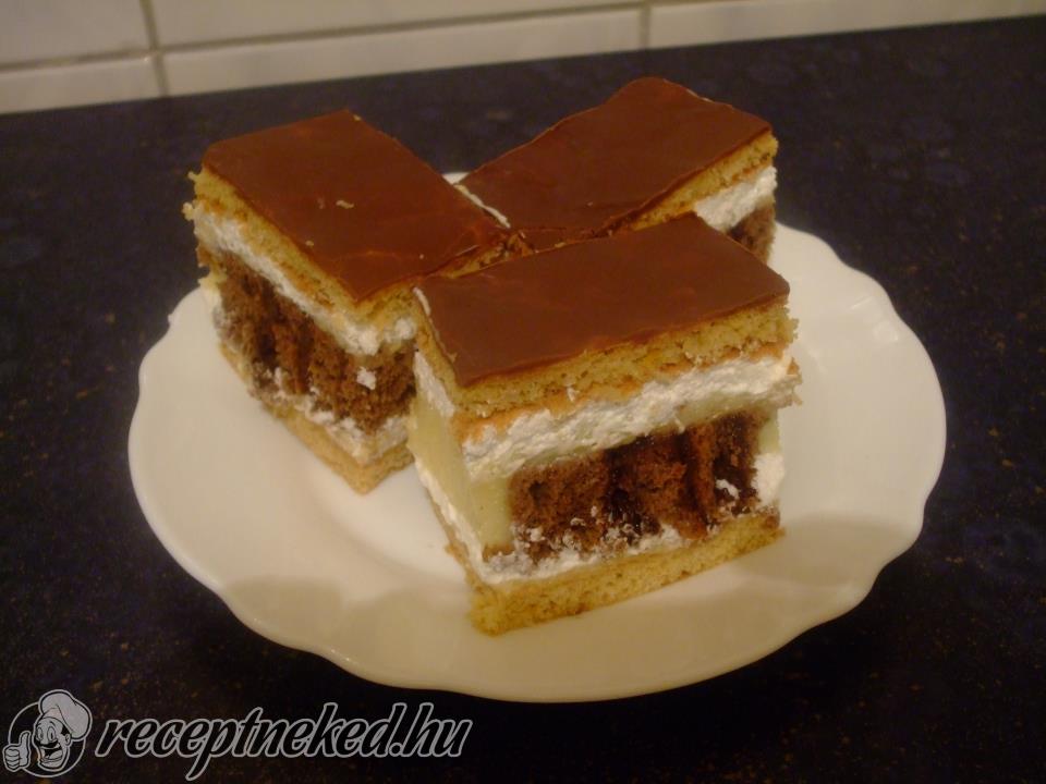 Az egyik tésztalapra rákenjük a vaníliás krémet, megszórjuk az apróra tört karamellel és ráfektetjük a mogyorós tésztalapot. Egy éjszakán át pihentetjük, majd másnap tetszés szerint szeleteljük.