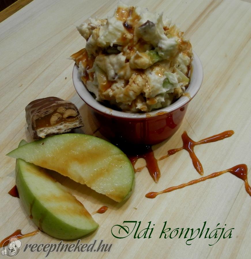 A tésztát két részre osztjuk és 20*30 cm-es lapokká nyújtjuk. Az egyik lapot 10-12 perc alatt megsütjük. A másik tésztalapot is belenyújtjuk a tepsibe és eloszlatjuk rajta a karamellás mogyorót és ezt is megsütjük.