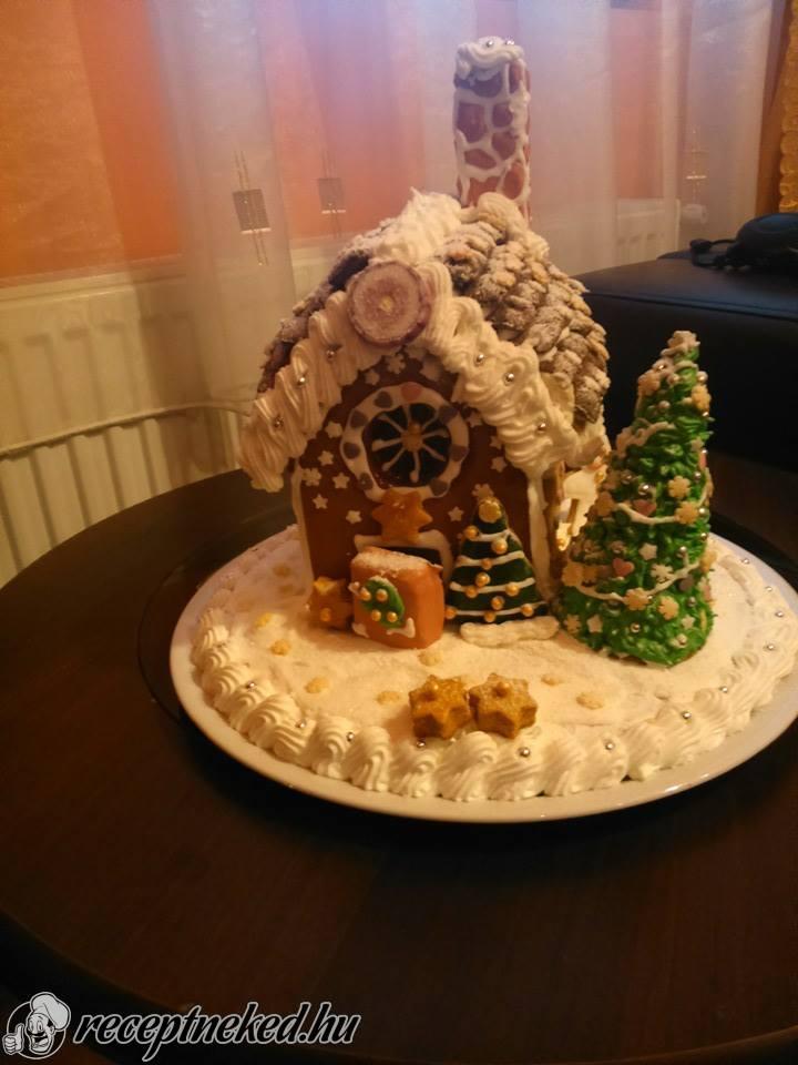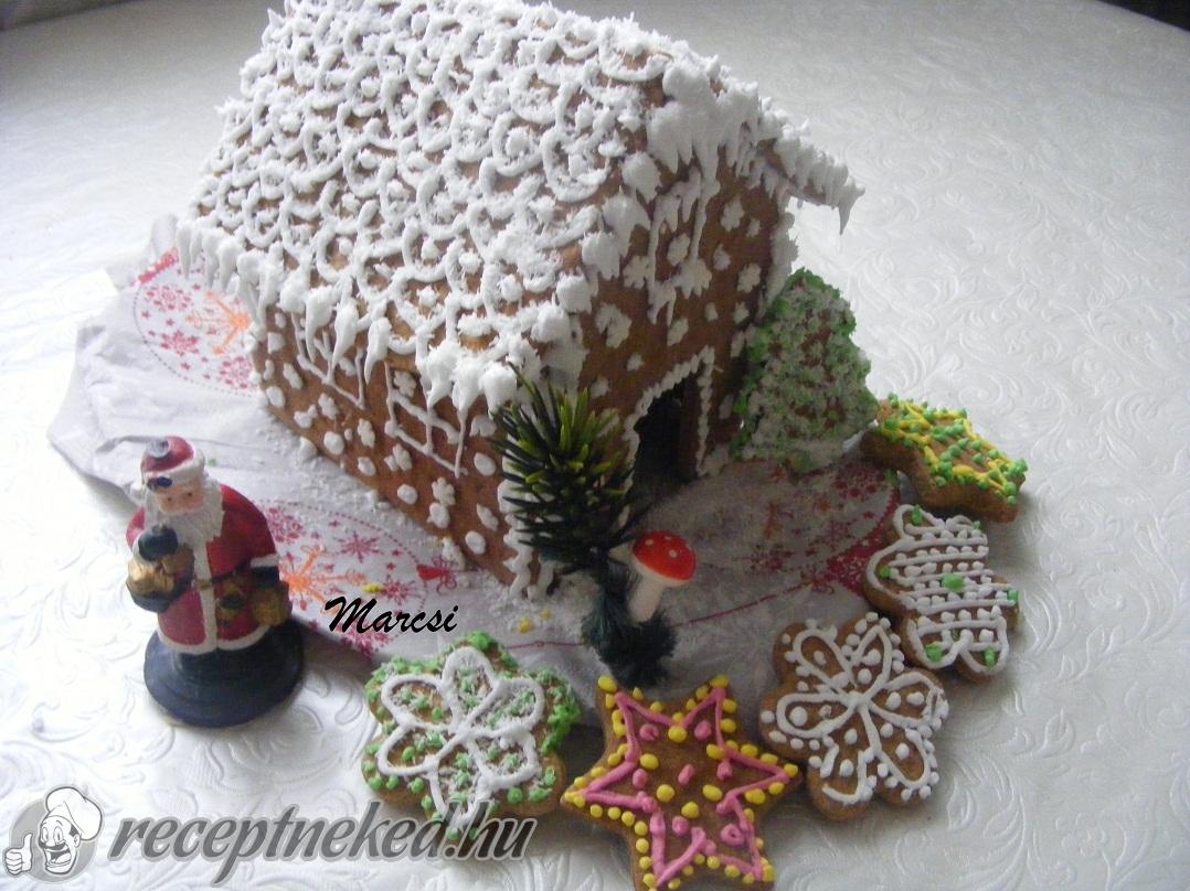 A tojásfehérjét kissé felverjük, apránként hozzáadjuk az átszitált porcukrot. Papírtölcsérbe vagy nejlonzacskóba töltjük, aminek a sarkát kivágjuk. Ízlés szerint díszítjük a házikót.