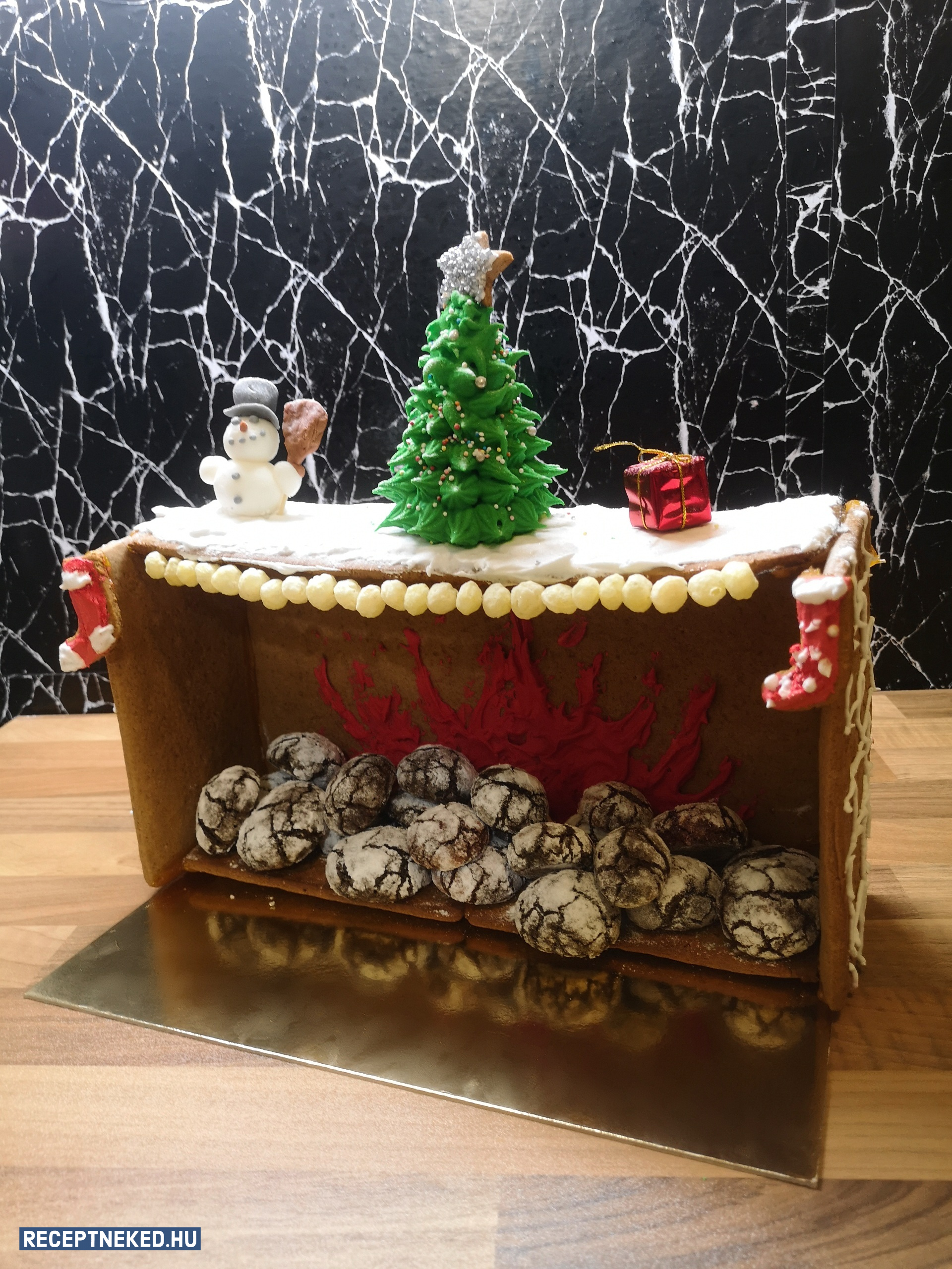 A marcipánból hóembert formázunk, feltesszük őt is a kandalló tetejére, végül az egész kandallónkat szitán keresztül jól megszórjuk porcukorral.