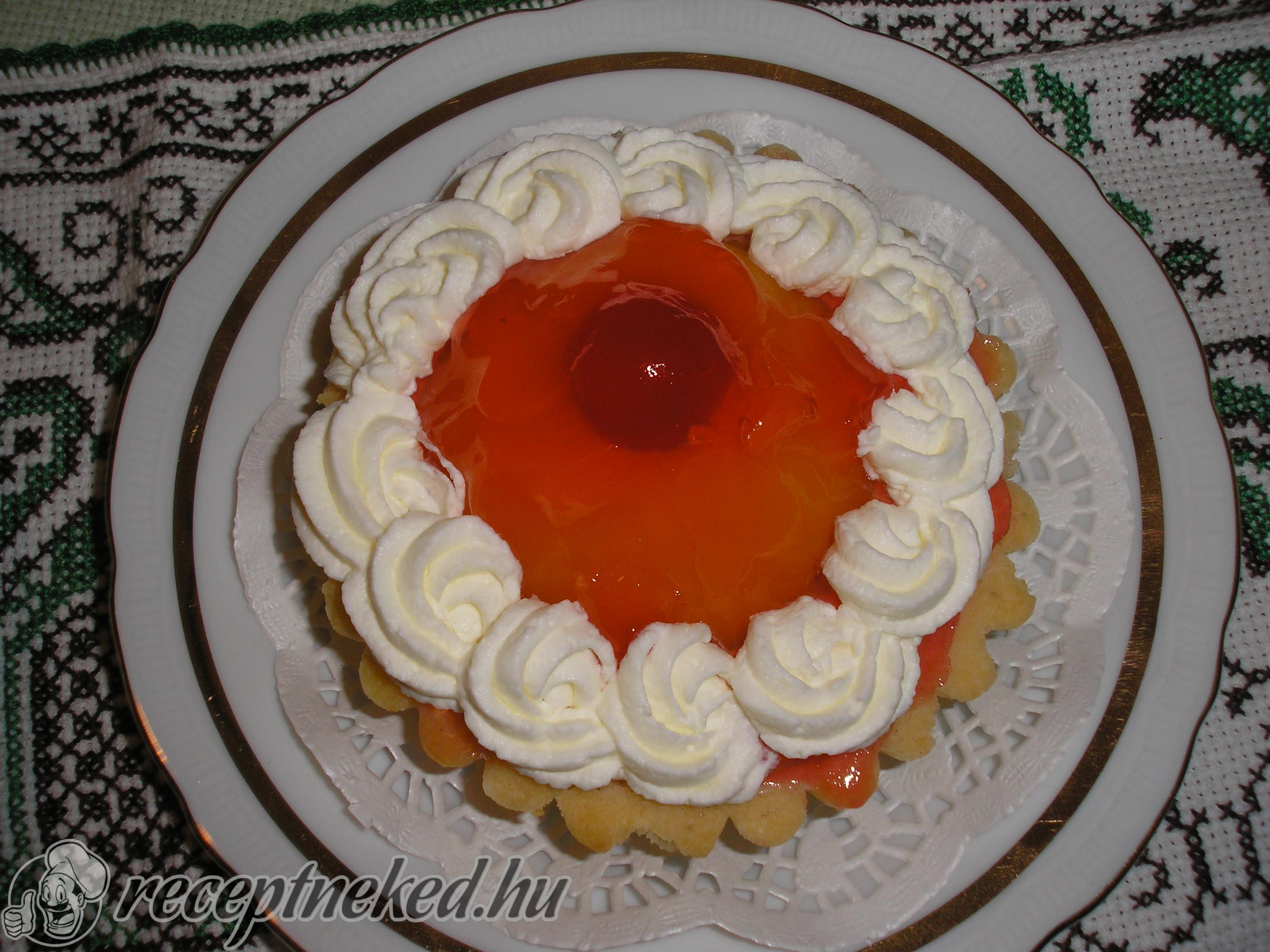 A tojásokat szétválasztjuk. A fehérjét csipetnyi sóval elkezdjük felverni habnak, közben fokozatosan adjuk hozzá a cukrot és verjük fel kemény habnak. Ezután óvatosan keverjük bele a tojások sárgáját, vizet, végül a sütőporral elkevert lisztet.A tepsit sütőpapírral kibéleljük, a tésztát beleöntjük és előmelegített, 180 fokos sütőben készre sütjük kb 20-25 perc alatt.A krémhez a pudingporhoz hozzákeverjük a tejet és sűrű krémmé főzzük. A vajat a porcukorral kihabosítjuk és a kihűlt pudingos krémhez adjuk.A megsült és kihűlt piskótát nagy méretű szaggatóval kiszaggatjuk. Krémmel körbekenjük, kókuszreszelékben meghempergetjük. A maradék krémet habzsákba töltjük és a korongokat körbedíszítjük. A megmosott, feldarabolt gyümölcsökkel a közepét kirakjuk.A zselatinport vízben feloldjuk, összemelegítjük és ecsettel a gyümölcsöket átkenjük.Tálalásig hűtőben tároljuk!