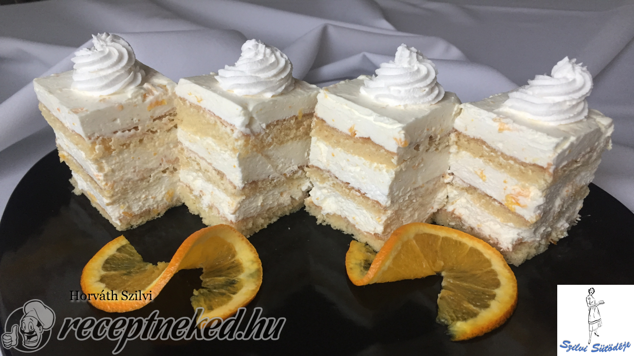 A kész narancsos krémmel betöltjük a lapokat úgy, hogy az utolsó lapra is jusson. A maradék tejszínt is felverjük, majd ízlés szerint díszítjük vele a sütemény tetejét.
