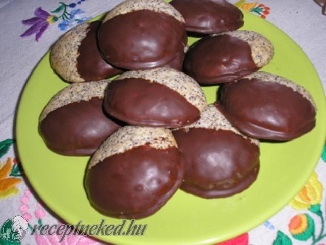Az egész mákos rudat falatnyi darabokra vágjuk. Sütőpapíros tepsire sorakoztatjuk a falatnyi megtöltött tésztákat.