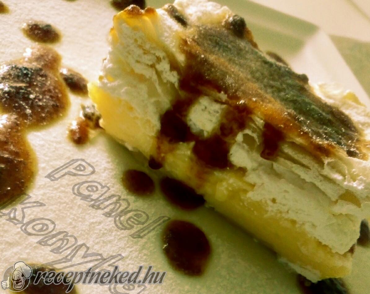 Ha a krém besűrűsödött levesszük a tűzről és kihűtjük, majd az egészben hagyott tésztára kenjük egyenletesen.