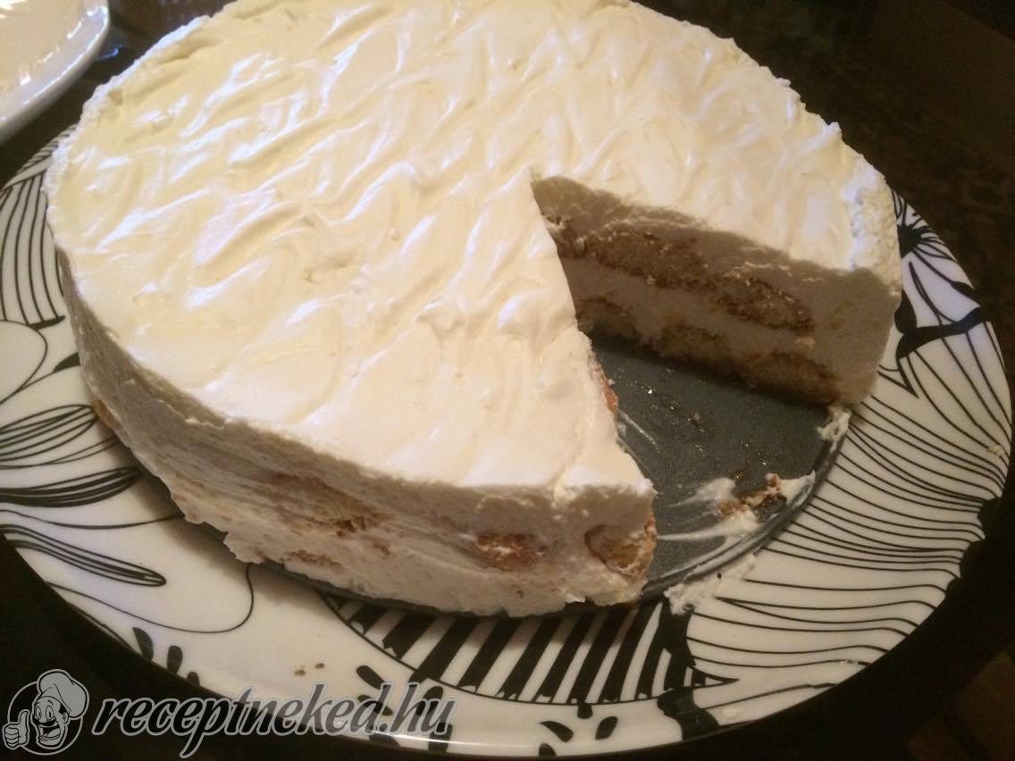 Közben a mascarponét a porcukorral,a citrom héjával és a levével habosra keverjük, majd habzsákba töltjük és a piskótára nyomjuk körben, közepébe barack lekvárt teszünk.