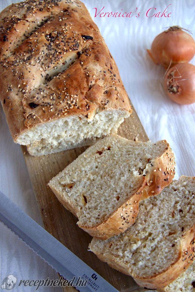 Ezután a tésztát feltekerjük és 8-10 perc pihentetés után az előző tekeréssel keresztben kisodorjuk a tésztát, hagymát szórunk rá és véglegesre feltekerjük. A spirális végeit kézzel összenyomkodjuk és szép hosszúkás kenyeret formázunk.