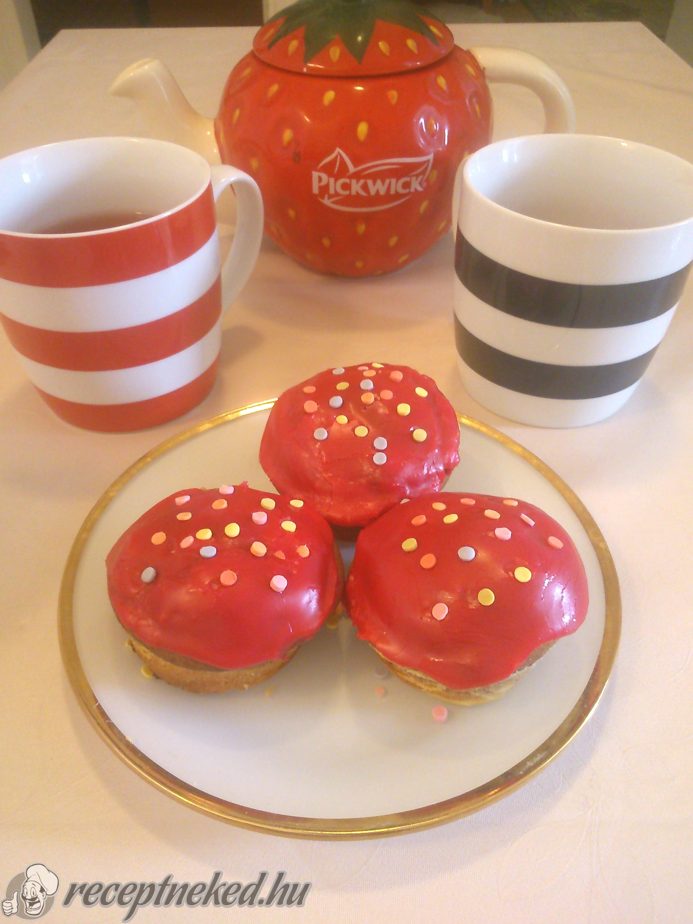 Rákenjük a mázat a muffinok tetejére egy kávéskanál segítségével, és még szórhatunk rá egy kis díszítő cukorkát is.