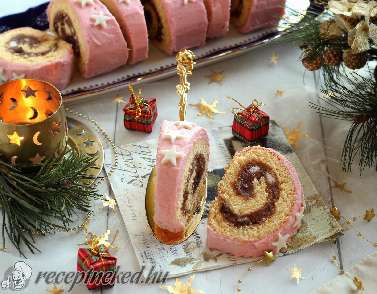 A piskótát kitekerjük, megkenjük lekvárral, majd egyenletesen elterítjük rajta a puncsos keveréket. Óvatosan visszatekerjük, sütőpapírba becsomagoljuk és egy éjszakára hűtőbe tesszük.