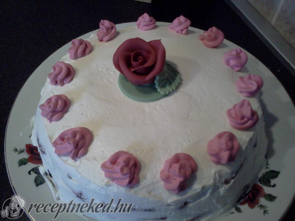 A piskótát kettévágom. A krém 1/3-át rákenem a torta alsó lapjára, majd ráhelyezem a másik piskótalapot. A maradék krémmel a tetejét és az oldalát is bevonom. A piskóta levágott tetejét szétmorzsolom, mellyel a torta oldalát bevonom. A tetejét is díszíthetjük vele.