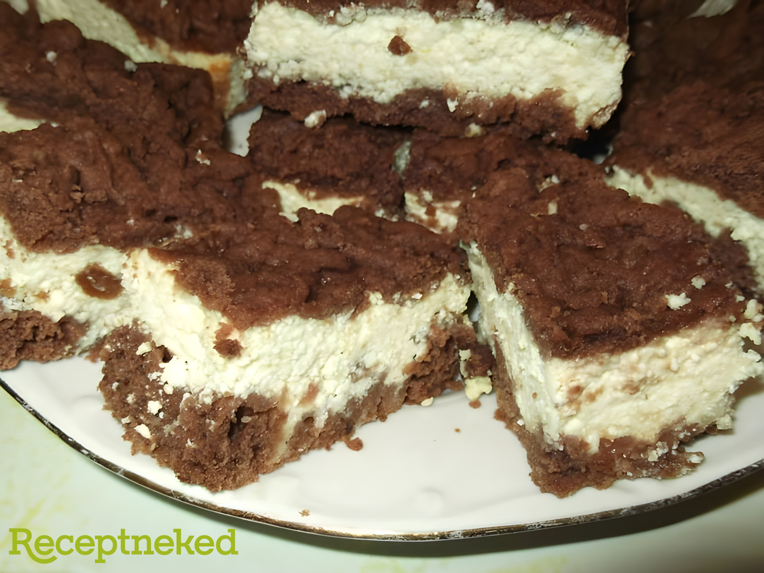 A túrós tölteléket elegyengetjük a tésztán. A másik tésztát ráreszeljük a túrós töltelékre.