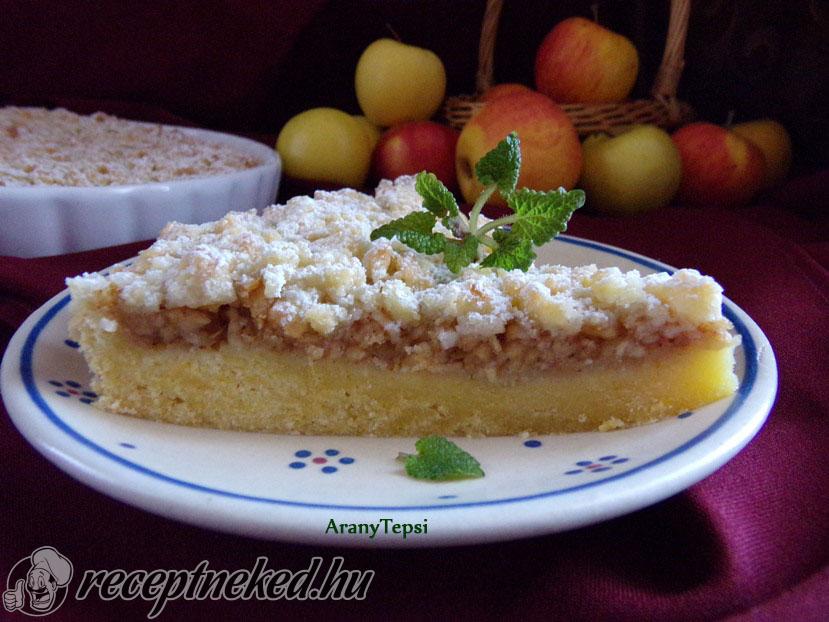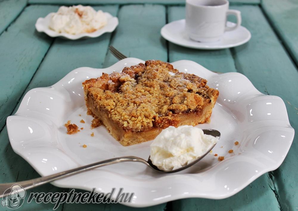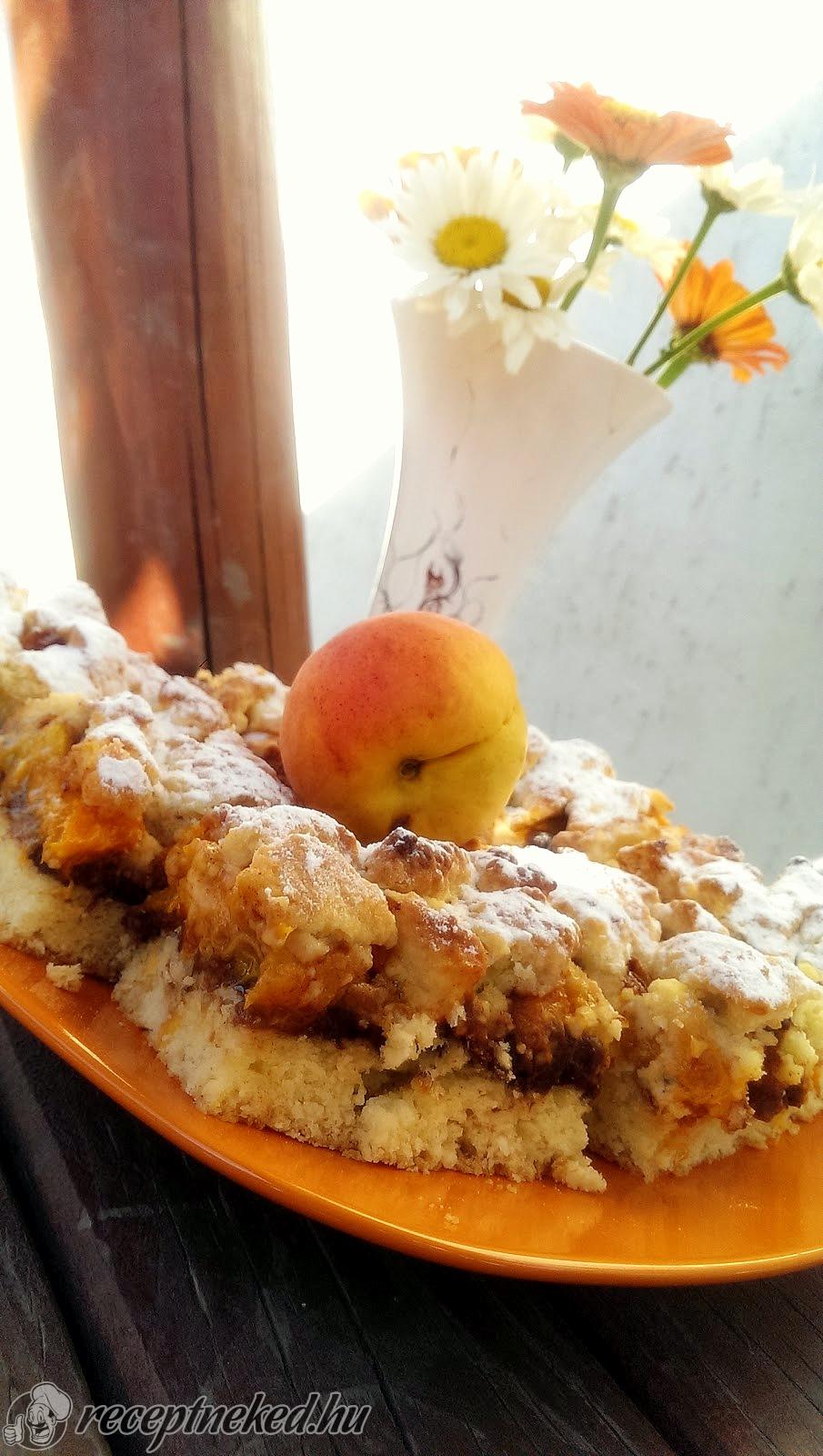 A tepsiben lévő tésztát szórjuk meg a darált dióval, majd kanalazzuk rá a fűszeres sárgabarackot.