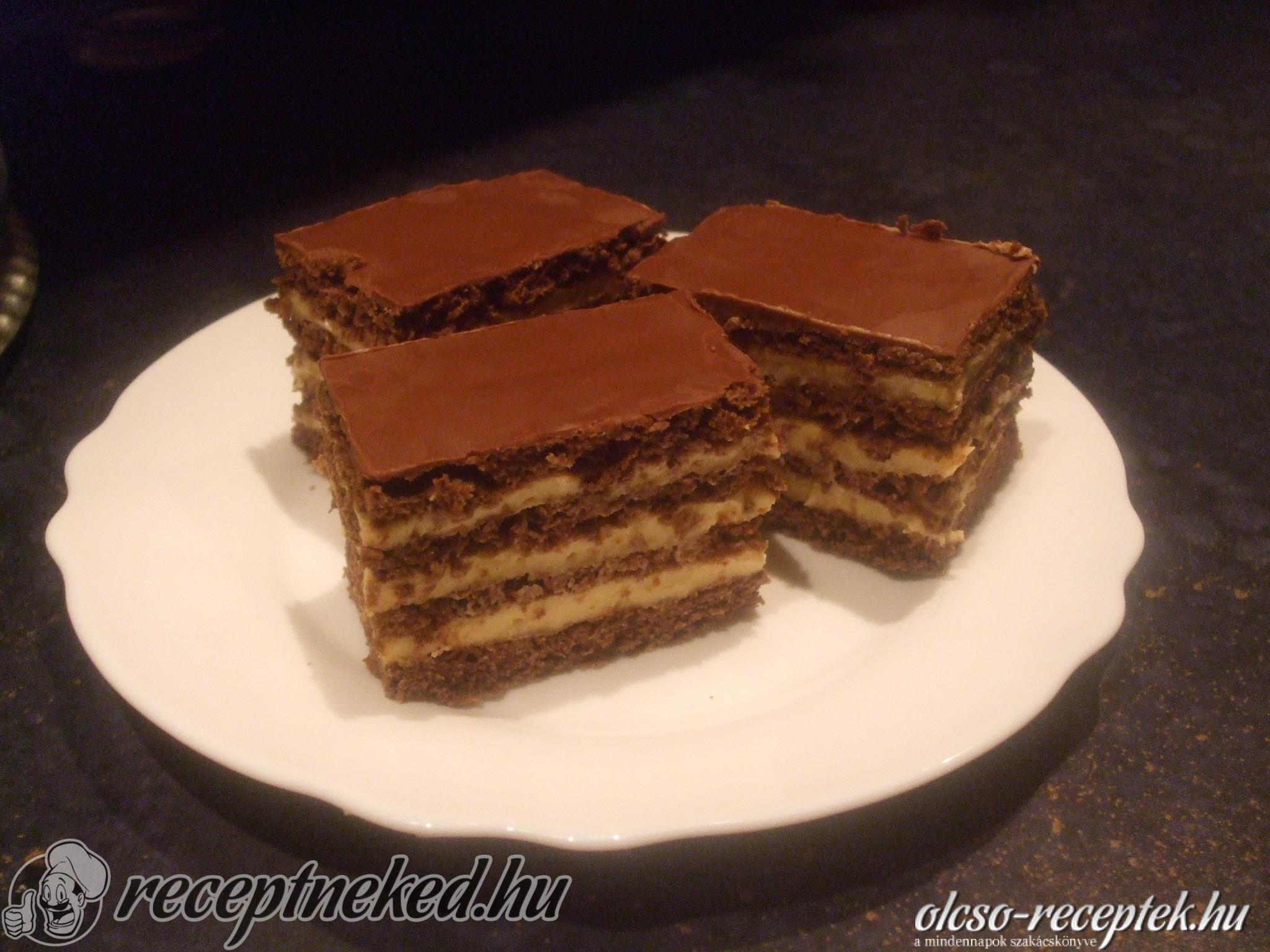 A lisztet a szódabikarbónával elkeverjük, majd a margarinnal eldörzsöljük. Hozzáadjuk a porcukrot, a tojást és a kakaót, majd egynemű tésztává gyúrjuk. A tésztát négy egyforma részre osztjuk, és egyenként lapokat nyújtunk belőle. A lapokat előmelegített sütőben megsütjük, majd hagyjuk kihűlni.