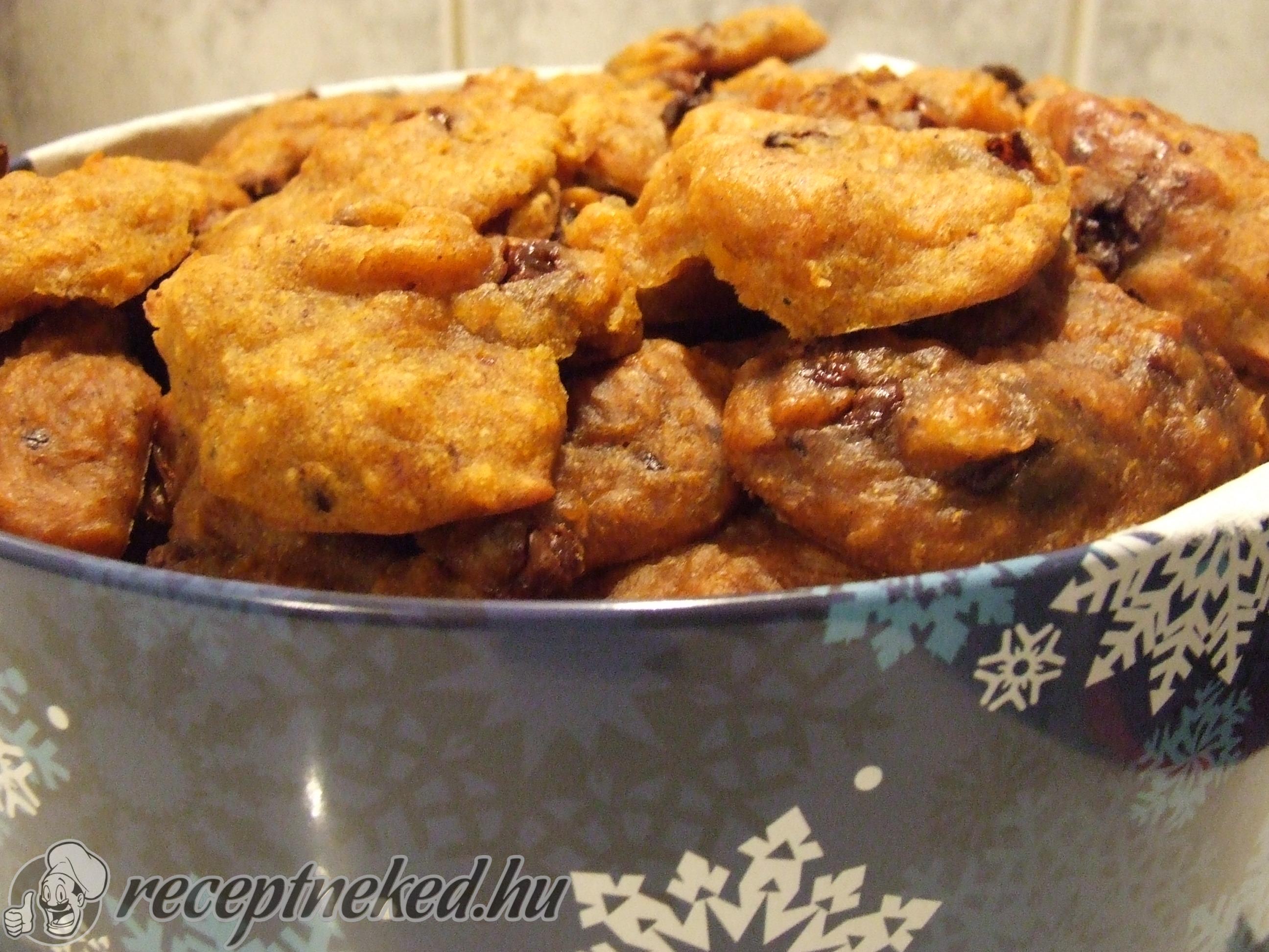 A sütőtököt pürésítjük és jól összekeverjük a lisztes tésztánkkal, majd belekeverjük a csokidarabokat