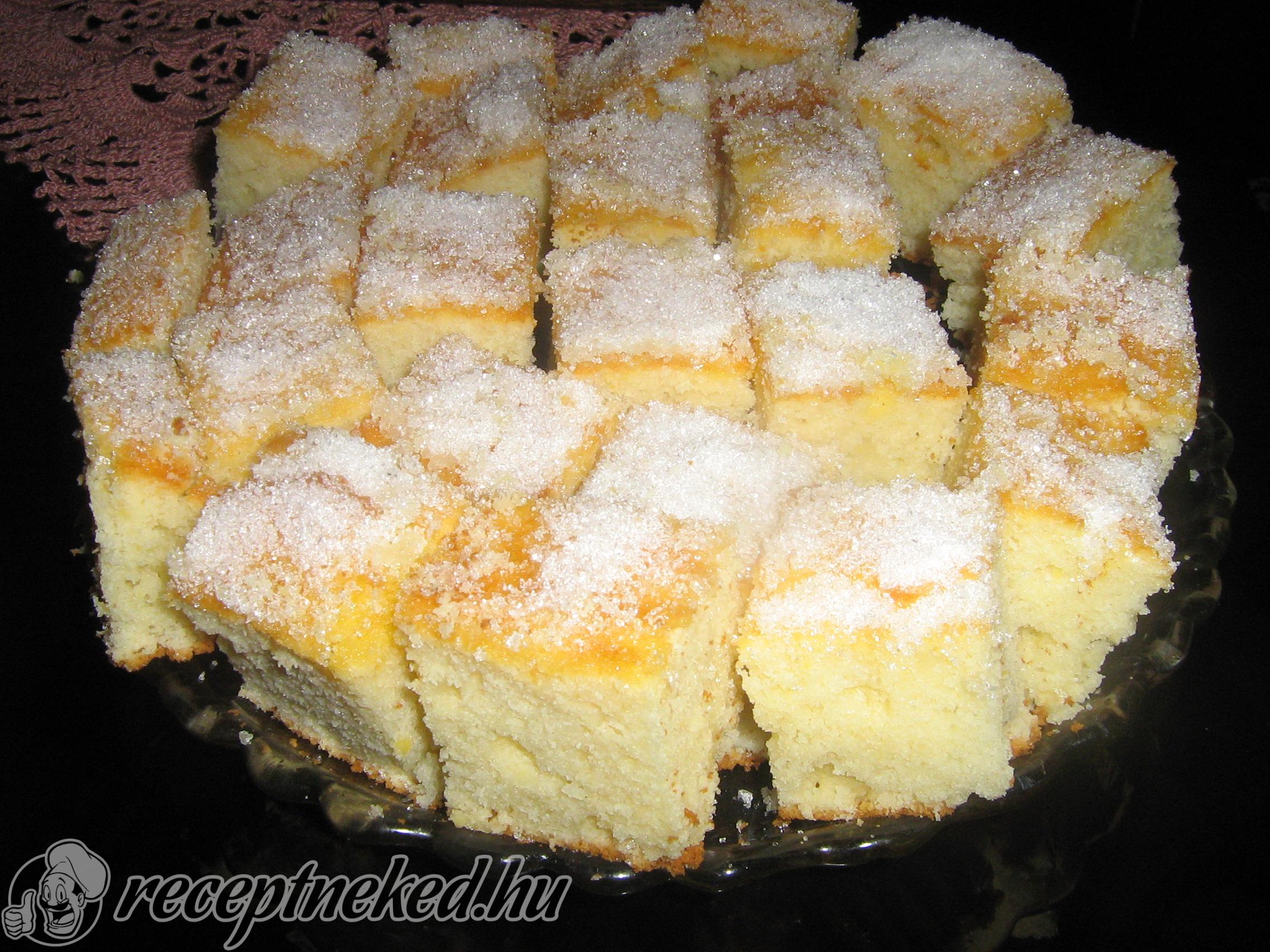 Egy 22*30 cm-es tepsit sütőpapírral kibéleljük, a masszát beleöntjük és előmelegített, 180 fokos sütőben készre sütjük kb 20 perc alatt. Tűpróbát végezzünk!