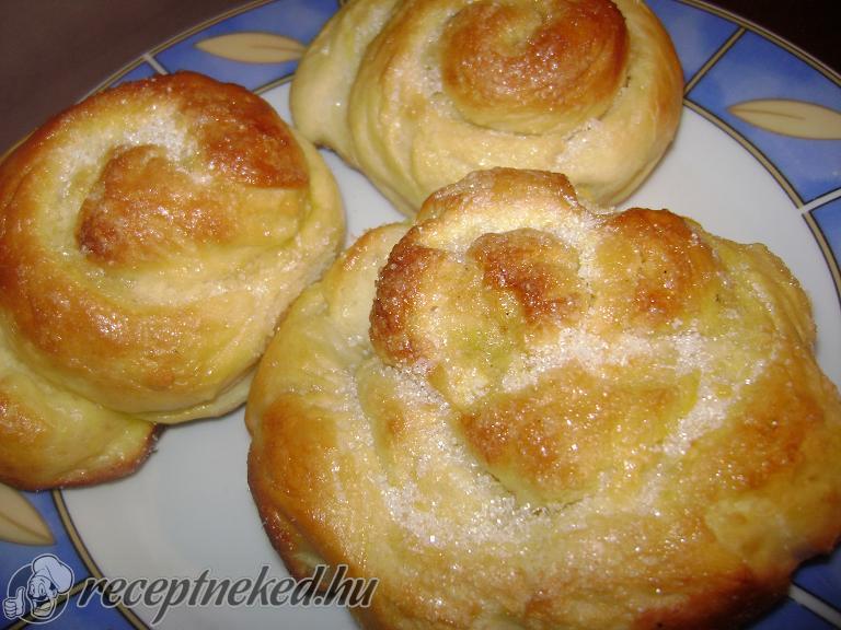 Ezután konyharuhával letakarva 10-15 percet pihentetjük, majd tojással lekenjük (megszórhatjuk cukorral, mákszemekkel, stb…) és 180 °C-os sütőben aranybarnára sütjük mérettől és sütőtől függően 15-25 perc alatt.