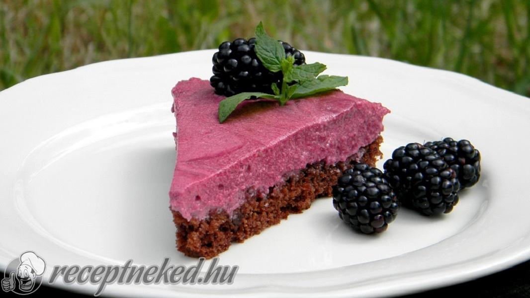 A kész krémet rásimítjuk a formában lévő tészta tetejére és egy éjszakára betesszük a hűtőbe, másnap szederszemekkel és friss mentalevelekkel díszítve tálaljuk.