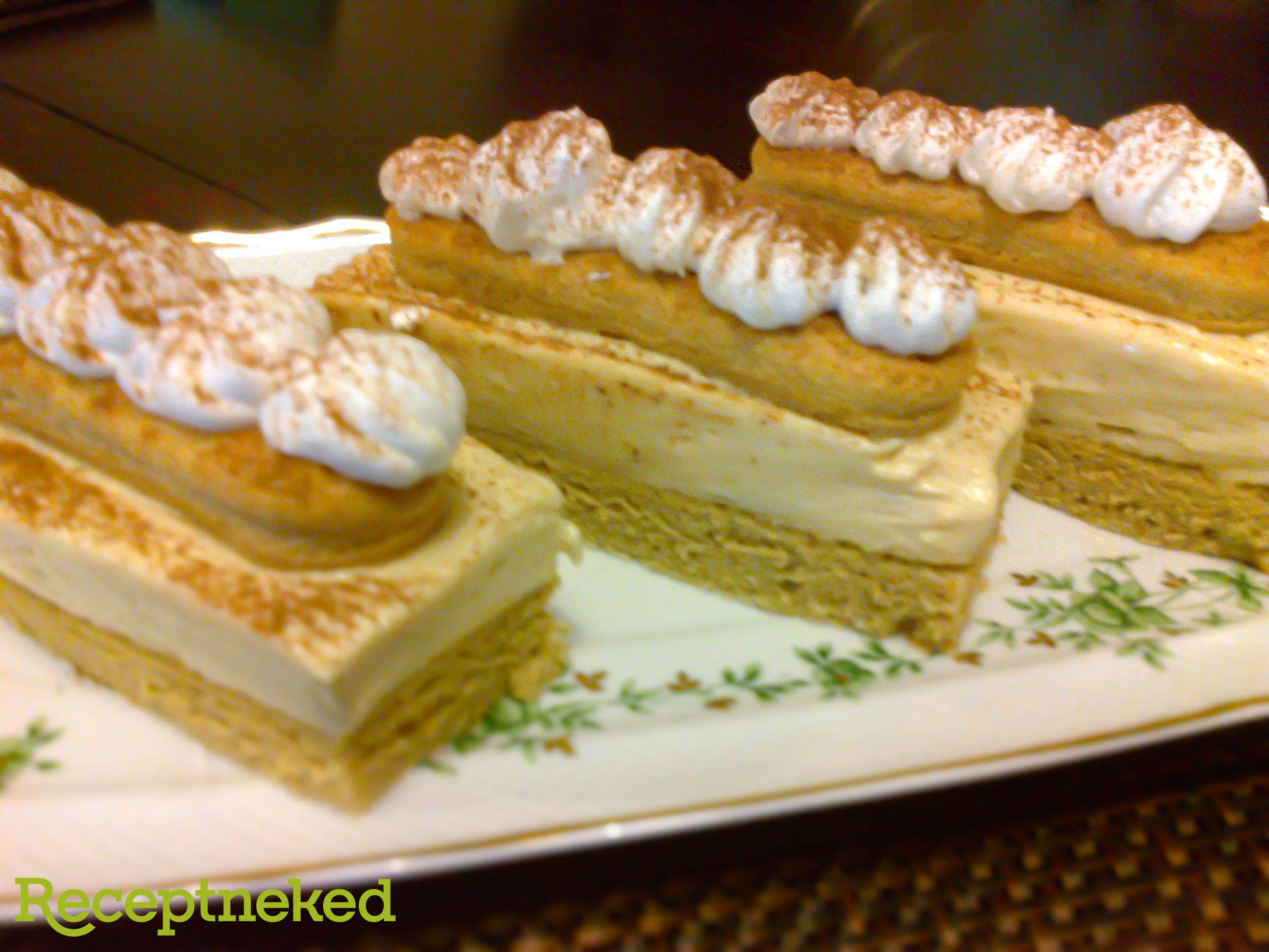 A kihűlt kávét összekeverjük a rummal.A piskótát lapjában félbevágjuk. Az egyik lapot visszatesszük a tepsibe, majd alaposan meglocsoljuk a rumos kávé felével. A kávés lapra rékenjük a krém felét, majd rátesszük a másik lapot és meglocsoljuk a kávé maradékával. Erre a lapra rákenjük a krém maradékát. Tálalás szelőtt szeletekre vágjuk és megszórjuk kakaóporral.