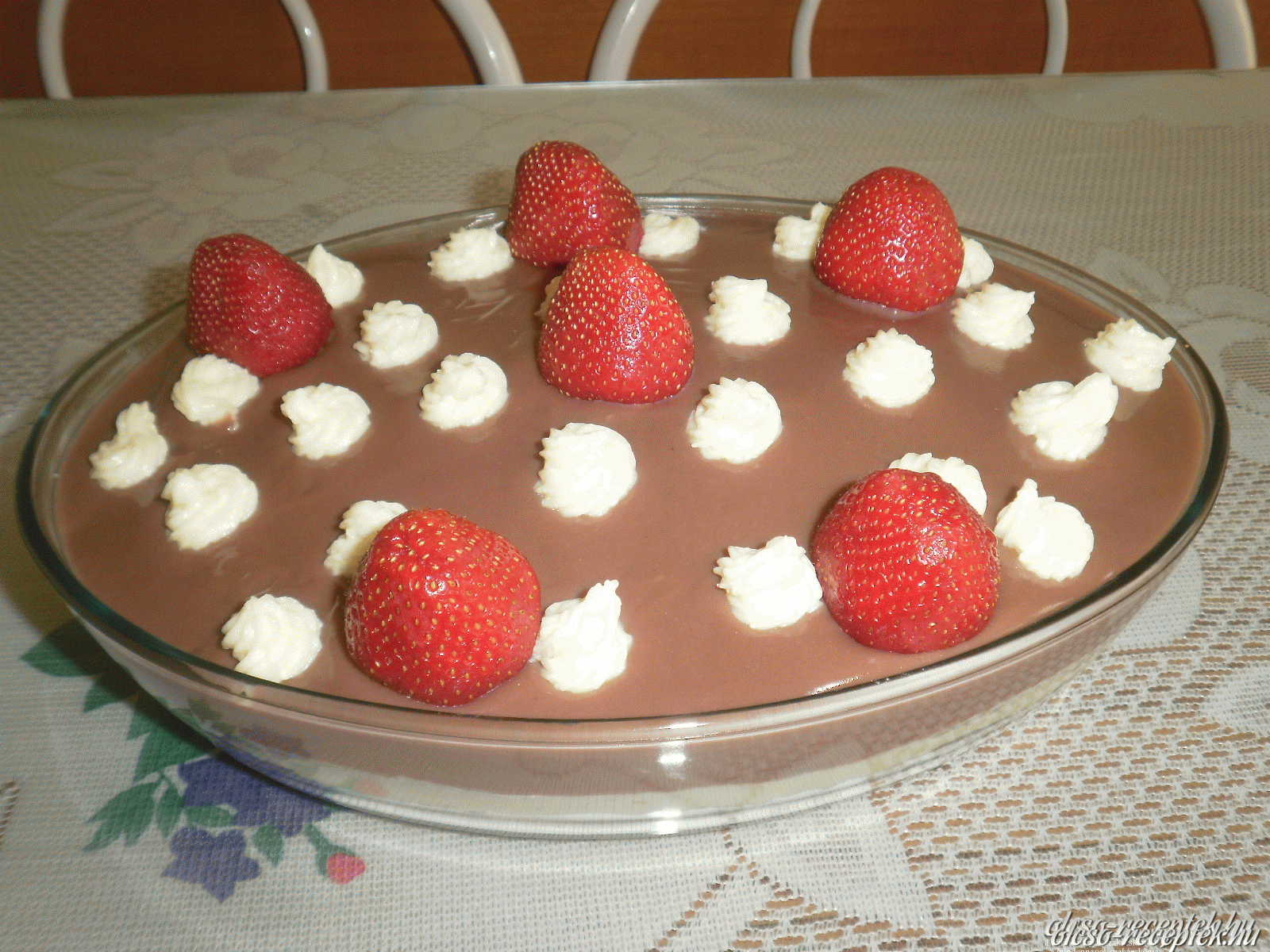 A pudingot 2,5 dl tejben megfőzzük, cukrot nem adunk hozzá, mert a csokoládékrém elég édes lesz. A túrót cukorral áttörjük, majd a még meleg pudinggal összekeverjük és összeturmixoljuk. Egy kisebb adagot félreteszünk a díszítéshez. A krémmel beterítjük a piskótát, majd a piskóta másik felével befedjük.