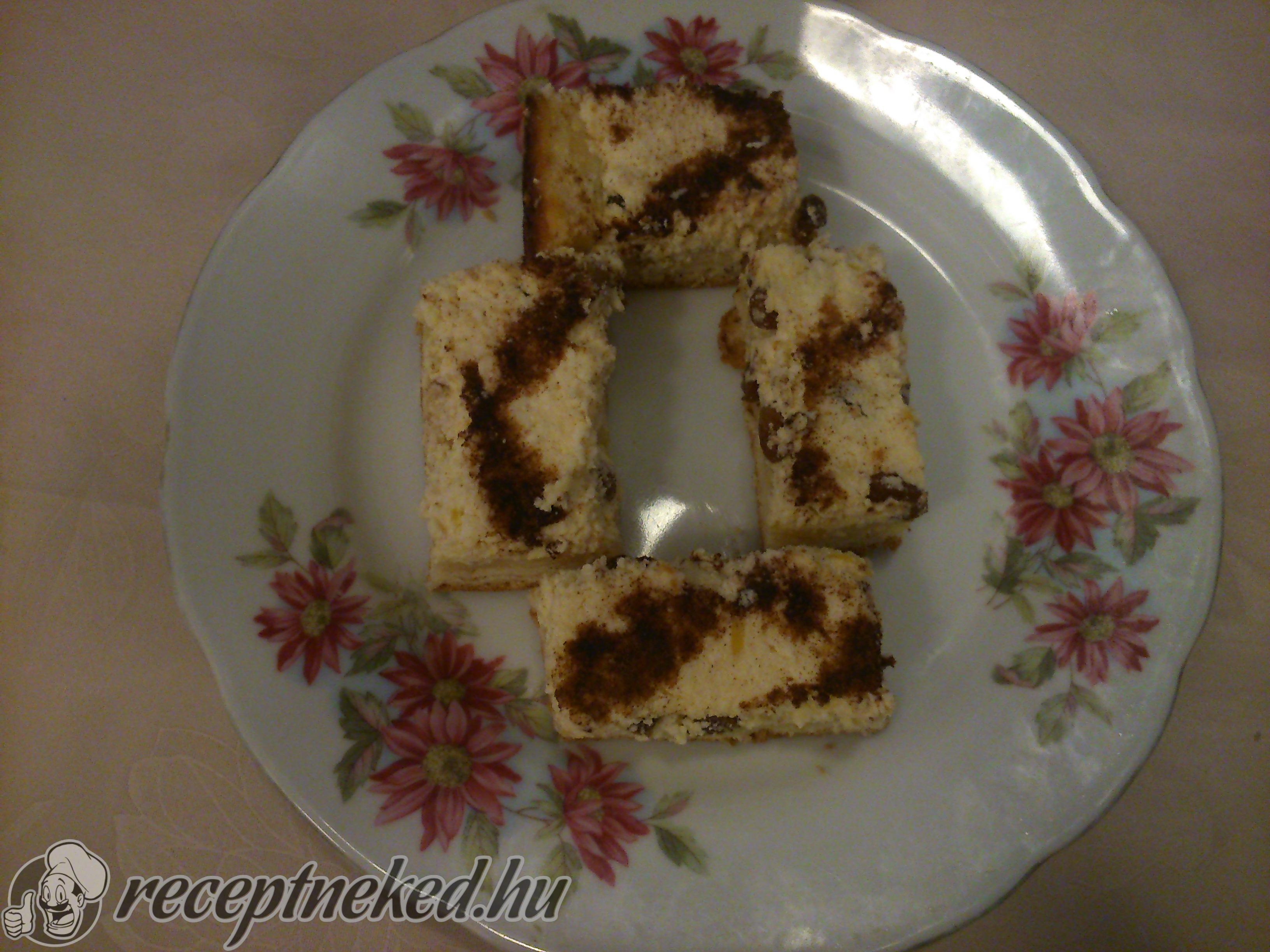 A túrókrémet rásimítjuk a lapra. Végül megszórjük fahéjas kristálycukorral a tútókrém tetejét rácsos alakzatban.