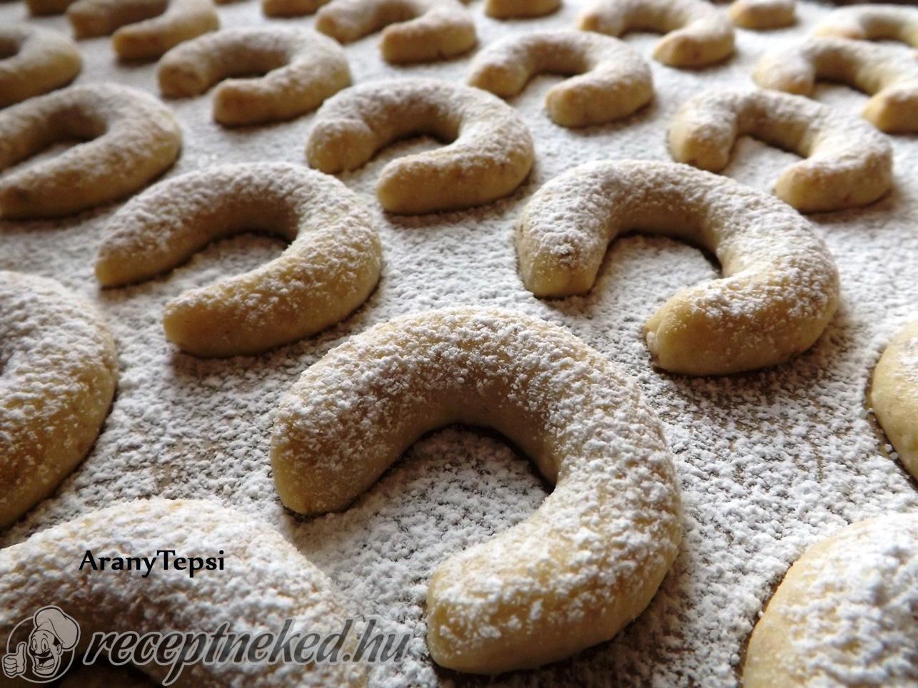 180 fokos sütőben nagyjából 15 perc alatt megsütjük, majd vaníliás cukorral elkevert porcukorba forgatjuk.