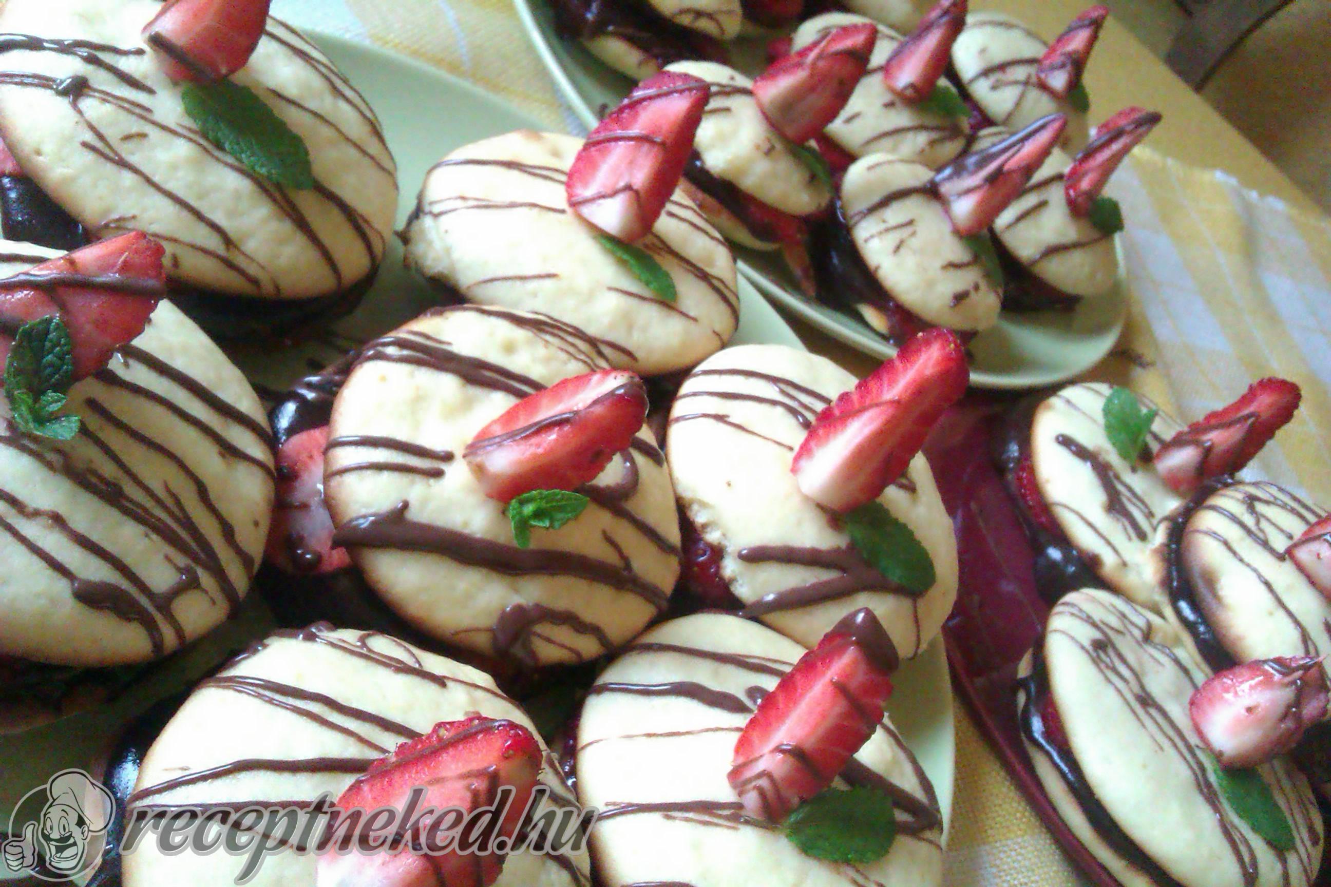 Az egyik korongra rányomunk egy jó adag krémet, majd egy másik korongot a tetejére teszünk. Betöltés után hűtőben tároljuk.