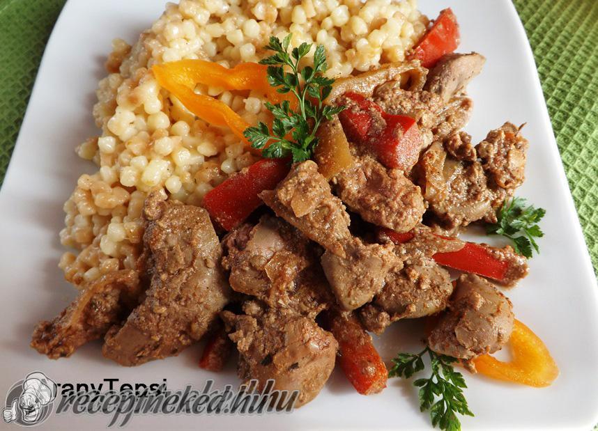Lassú lángon fedő alatt néha megrázva, megmozgatva 2,5-3 órát főzzük, a menet közben elfőtt levét időnként vízzel pótoljuk.