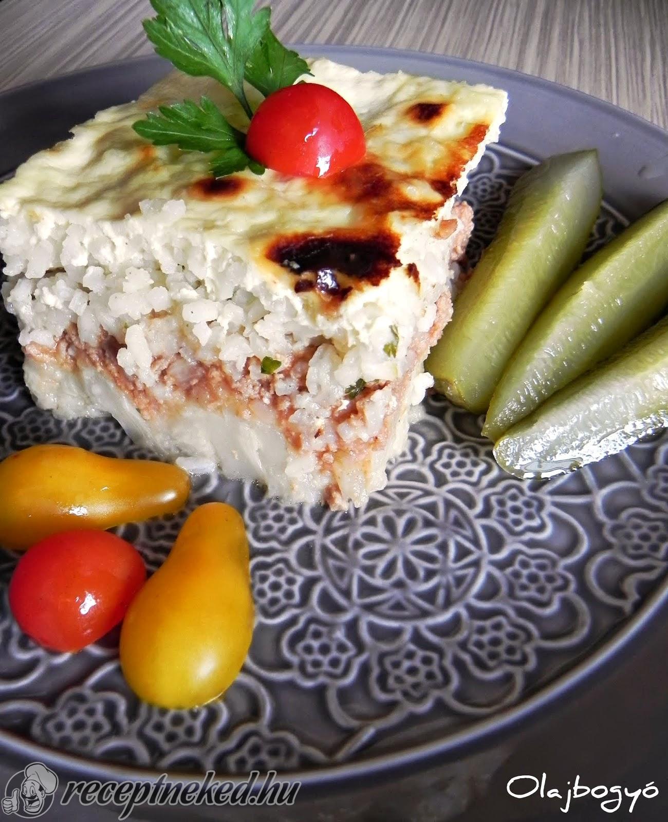 Amíg hűl a karfiol, elkészítjük a húst. Az olajat felhevítjük, majd a rádobjuk megtisztított, kockára vágott vöröshagymát. Megpároljuk, majd hozzáadjuk a préselt fokhagymát és rövid ideig tovább pároljuk. A megdinsztelt hagymára ráhalmozzuk a darált húst, sózzuk, borsozzuk, fedő alatt puhára pároljuk.