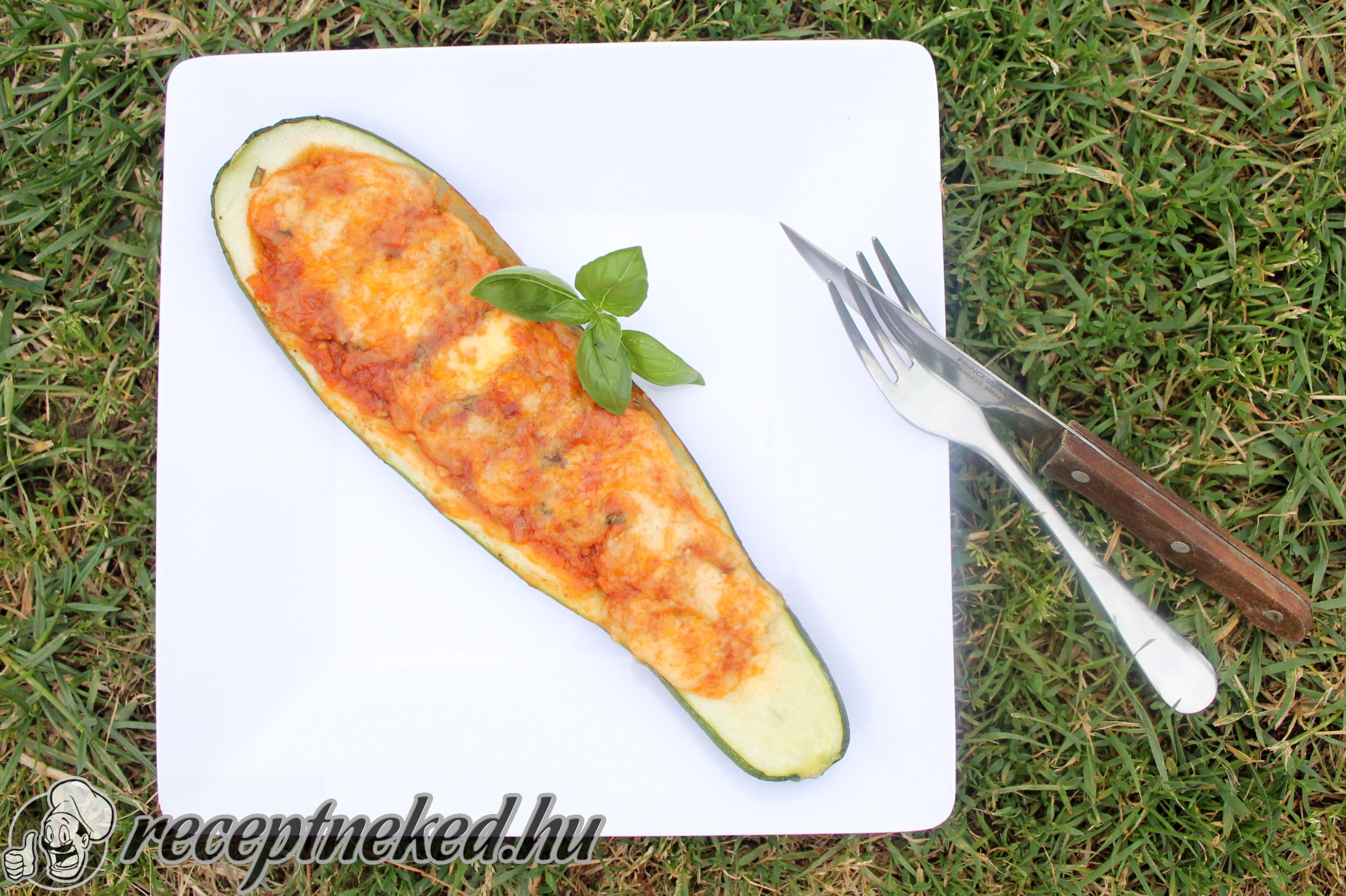 A felezett cukkiniket egy tepsibe tesszük, majd ezt a ragut belekanalazzuk a mélyedéseikbe, megszórjuk bazsalikommal és reszelt sajttal. 180 fokon sütjük kb 20 percen át, míg szép színt kap a sajt. Ez idő alatt a cukkini is megpuhul.