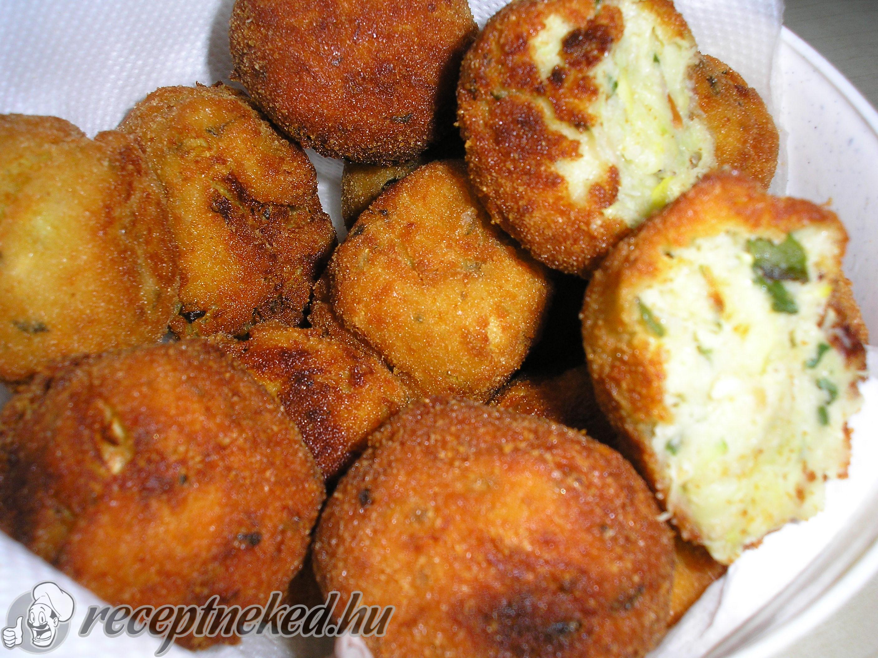 Sót csak csipetet tegyünk bele, mert a sajt is sós. Evőkanalanként adagoljuk hozzá a lisztet, míg olyan állaga lesz, amiből golyókat tudunk formázni. Megformázzuk a golyókat, és forró olajban ropogósra sütjük