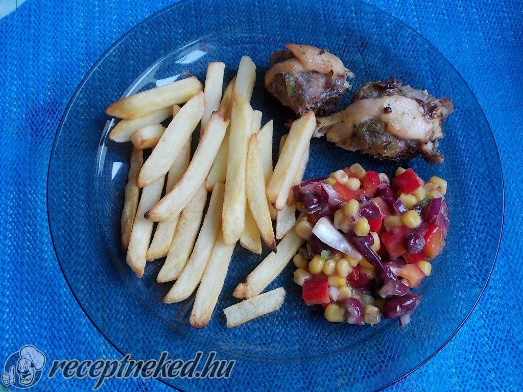 A kukoricát, vörösbabot, apróra vágott lilahagymát, csípős paprikát, pritamin paprikát összekeverjük egy tálban. Rozmaringgal ízesítjuk. Olívaolajat és ketchupot öntünk rá ízlés szerint, majd az egészet összekeverjük.