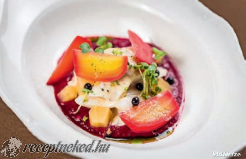 A bordó céklát krémesre turmixoljuk a zöldségalaplével és balzsamecettel.