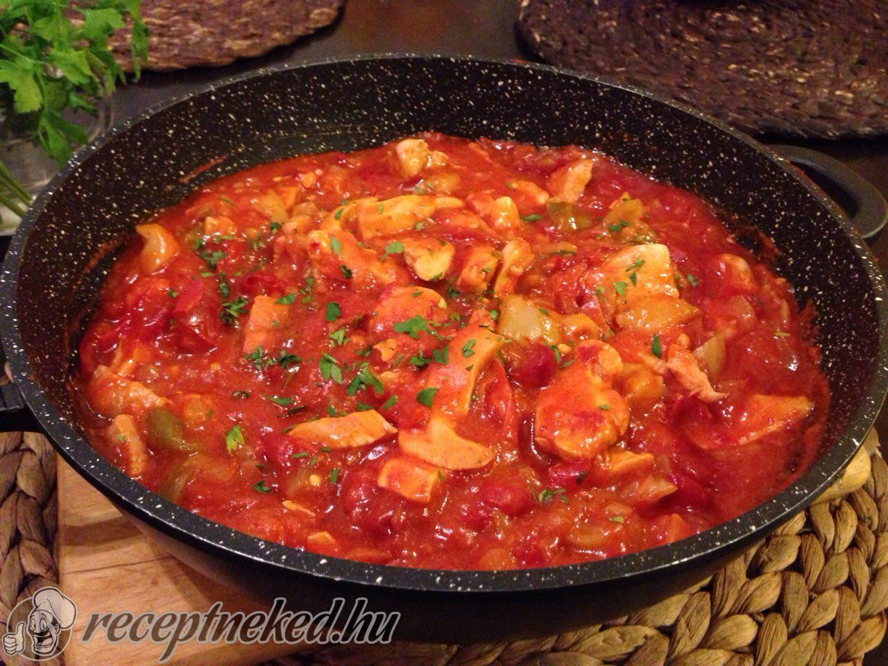 Ezután hozzá adom a karikára vágott tv- és csípős paprikát és kb. 5 percet fedő alatt párolom, majd jöhet a paradicsom, megint öt percpárolás, végül felöntöm az üveges lecsóval, ízlés szerint sózom és újraforrásig főzöm.