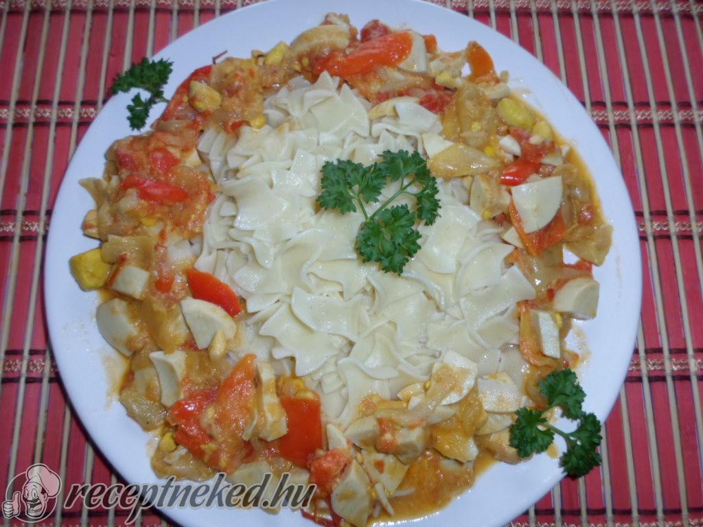 A párolt tarhonyára merjük a szószt és a tetejére ültetjük a hústekercseket. Petrezselyemmel megszórva díszítjük.
