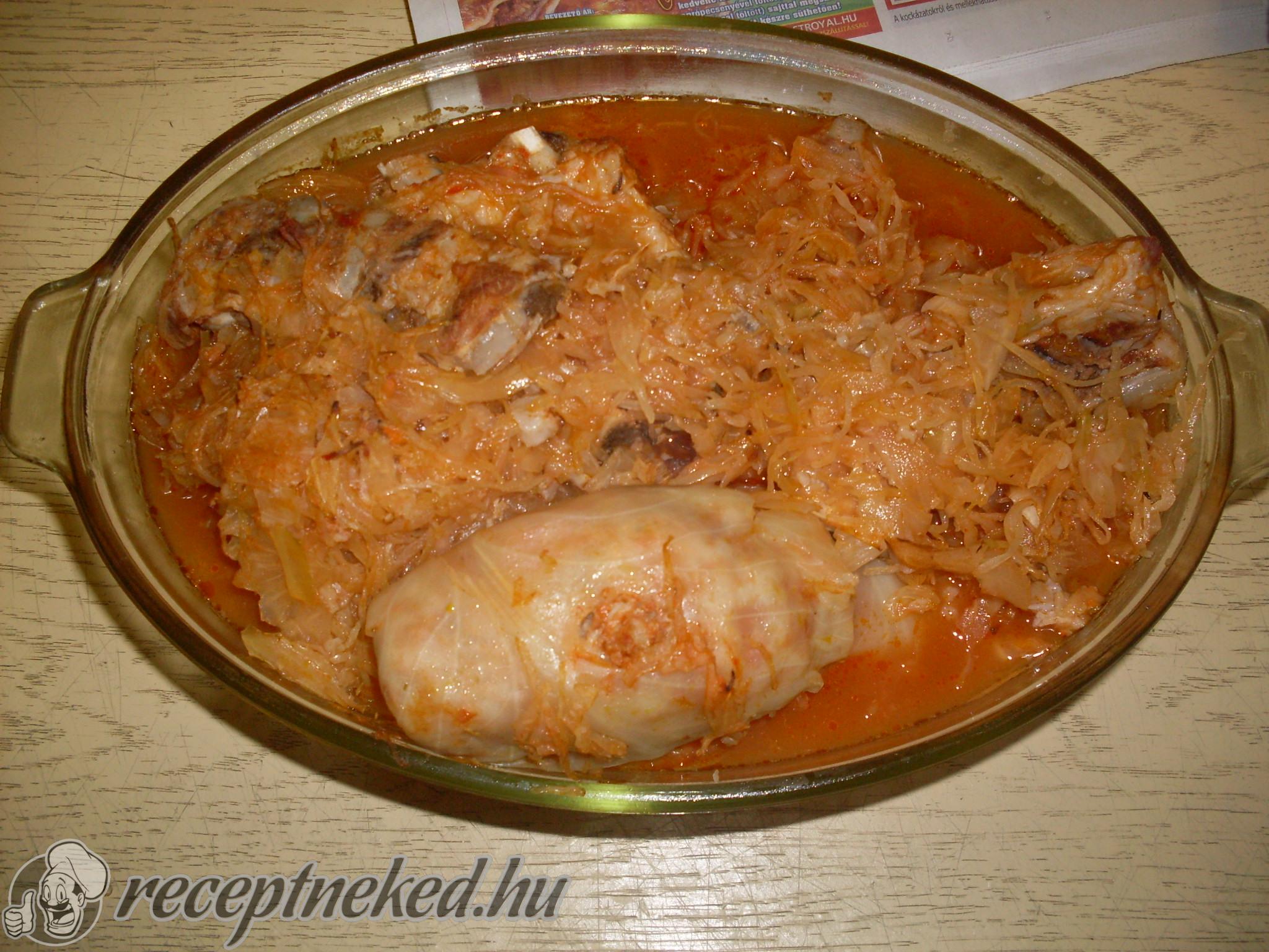 Megfelelő nagyságú fazékba rakjuk, a következő sorrendben: Alulra egy sor kicsavart apró káposzta, mely közé szálasra vágott vöröshagymát keverjük és megszórjuk ételízesítővel. Erre jönnek az oldalas darabok, majd a megtöltött káposzta levelek. Ezt leöntjük sűrített paradicsommal, majd egy újabb sor apró káposzta, oldalas és töltött káposzta következik.