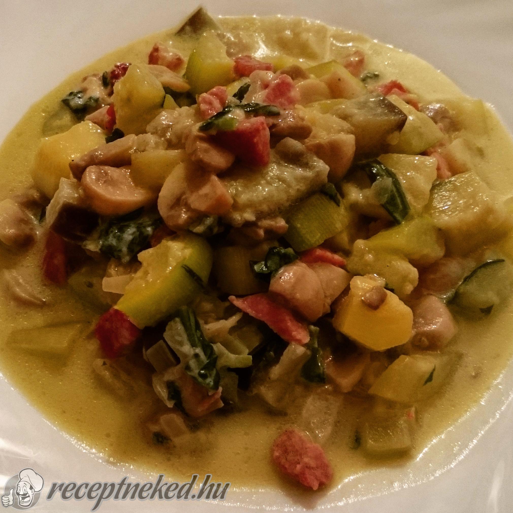 Néhány perc után felöntjük a főzőtejszínnel, hozzáadjuk a sajtkrémet és összefőzzük.