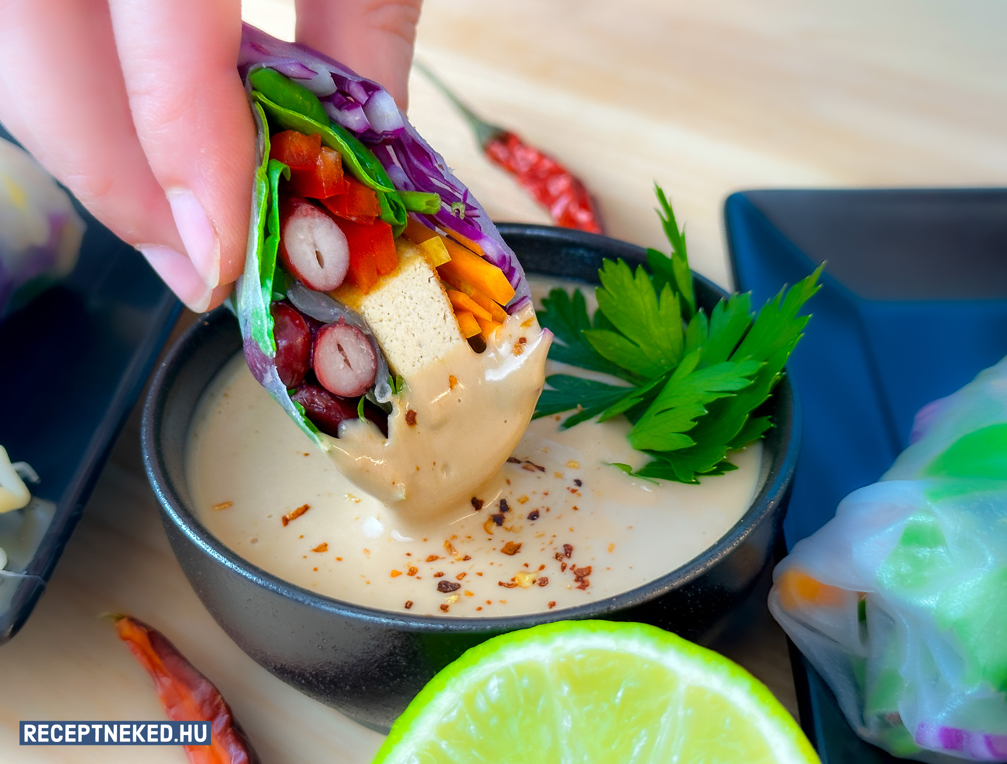Az öntethet tetszés szerinti mennyiségű mogyoróvajat keverünk ki a fűszerekkel. Ezt mindenki a saját ízlésének megfelelően tapasztalja ki. A lényeg, hogy egyszerre legyen a mártás kissé édeskés, savanykás és sós. Egyszóval pikáns, de ez mindenkinél egyénileg változó és azis, hogy mennyire szeretitek sűrűn.