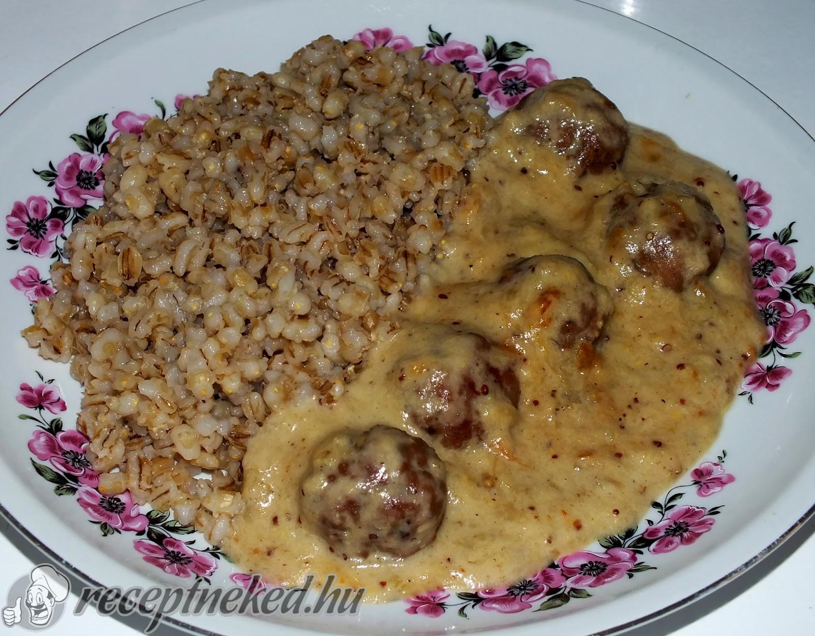 A húsgolyó alapanyagait egy tálba öntjük, és kézzel összedolgozzuk, majd diónyi golyókat formázunk. Egy sütőpapírral bélelt tepsibe sorakoztatjuk őket, és 250 fokos hőlégkeveréses sütőben kb. 20 perc alatt megsütjük. Félidőben pedig megfordítjuk mindet, így a saját zsírjukban pirulnak meg.