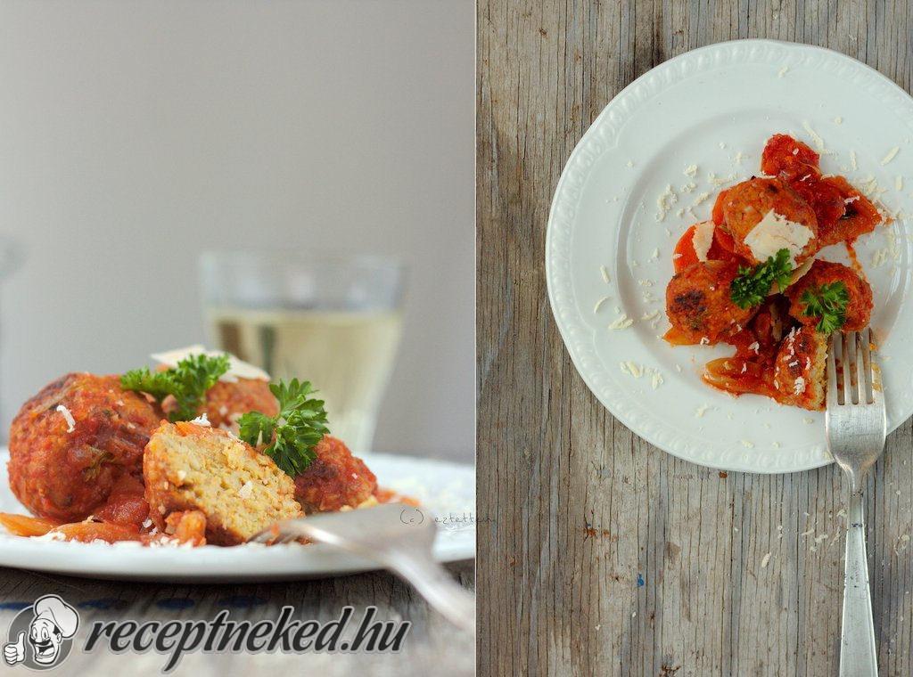 Legvégül egy szűrőkanállal kivesszük és beletesszük a paradicsomszószba.