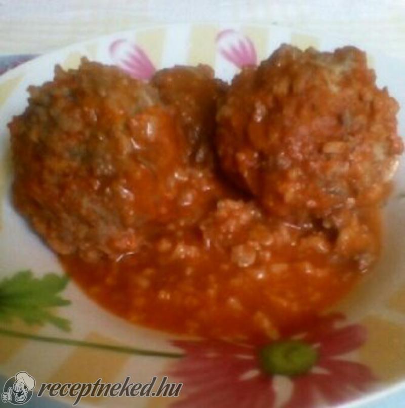 A húst a kockára vágott vöröshagymával, a zúzott fokhagymával, az átmosott rizzsel és a többi hozzávalóval összedolgozzuk és vizes kézzel kisebb gombócokat formázunk belőle.