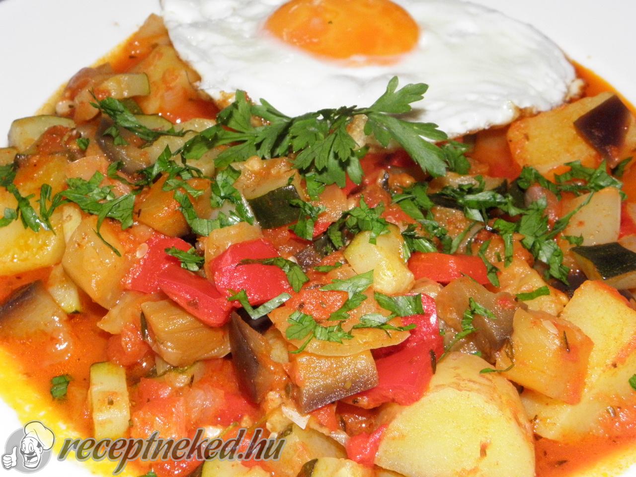 [box style=”info”]Pisto a ratatouille (francia lecsó) spanyol változata és mint minden ételnek, ennek is sokféle kiváló változata van Spanyolországban. Tálalható önálló ételként, ilyenkor tükörtojást, vagy szeletelt füstölt sajtot tesznek a tetejére, vagy köretként húsokhoz, halakhoz.[/box]