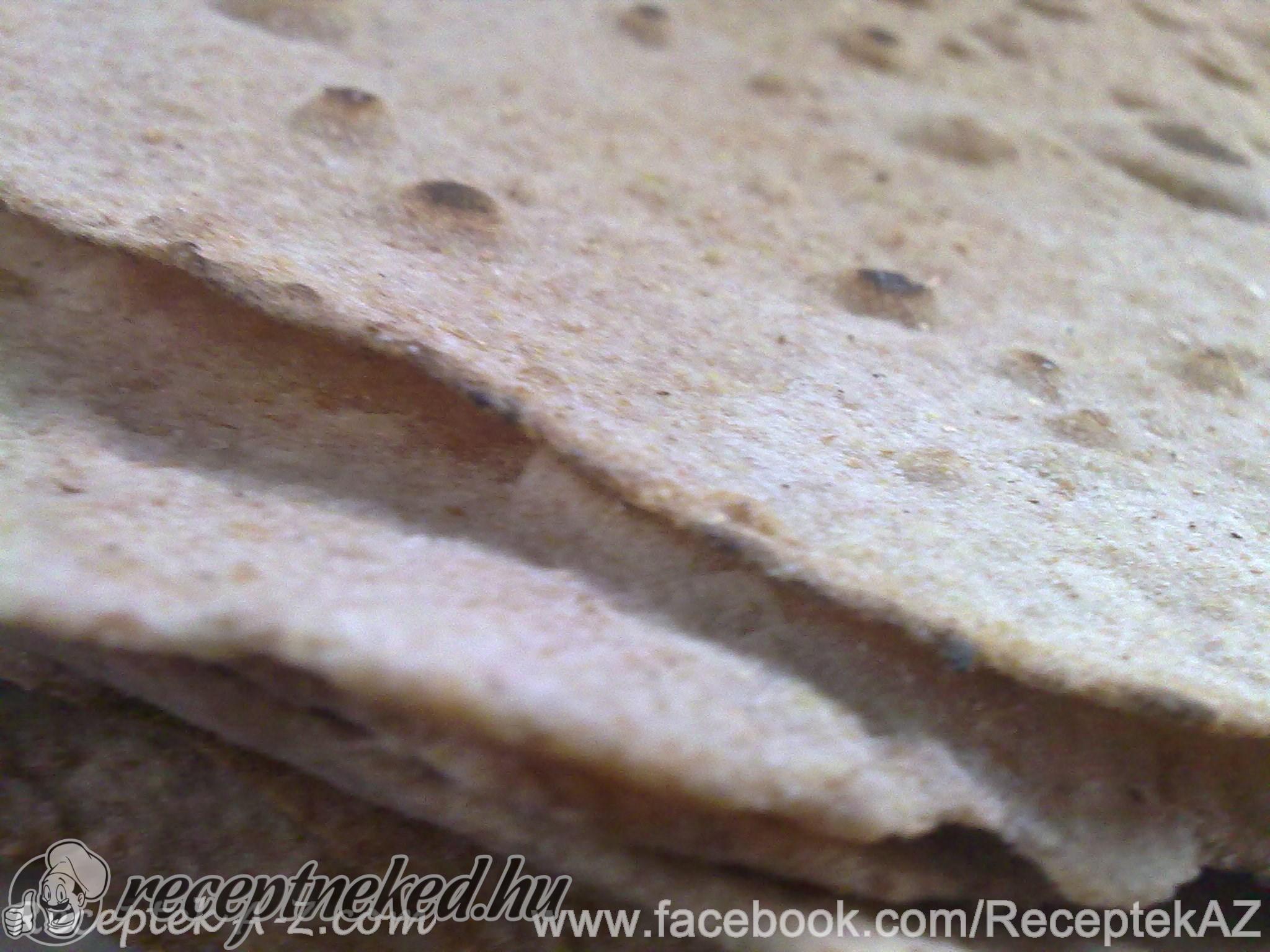 A teflon bevonatos serpenyőt felhevítjük zsiradék nélkül. Egy cipót lisztezett deszkán kör alakúra nyújtunk. Ha nem lesz szép kerek akkor késsel igazíthatunk rajta. A lapot a forró serpenyőbe tesszük.