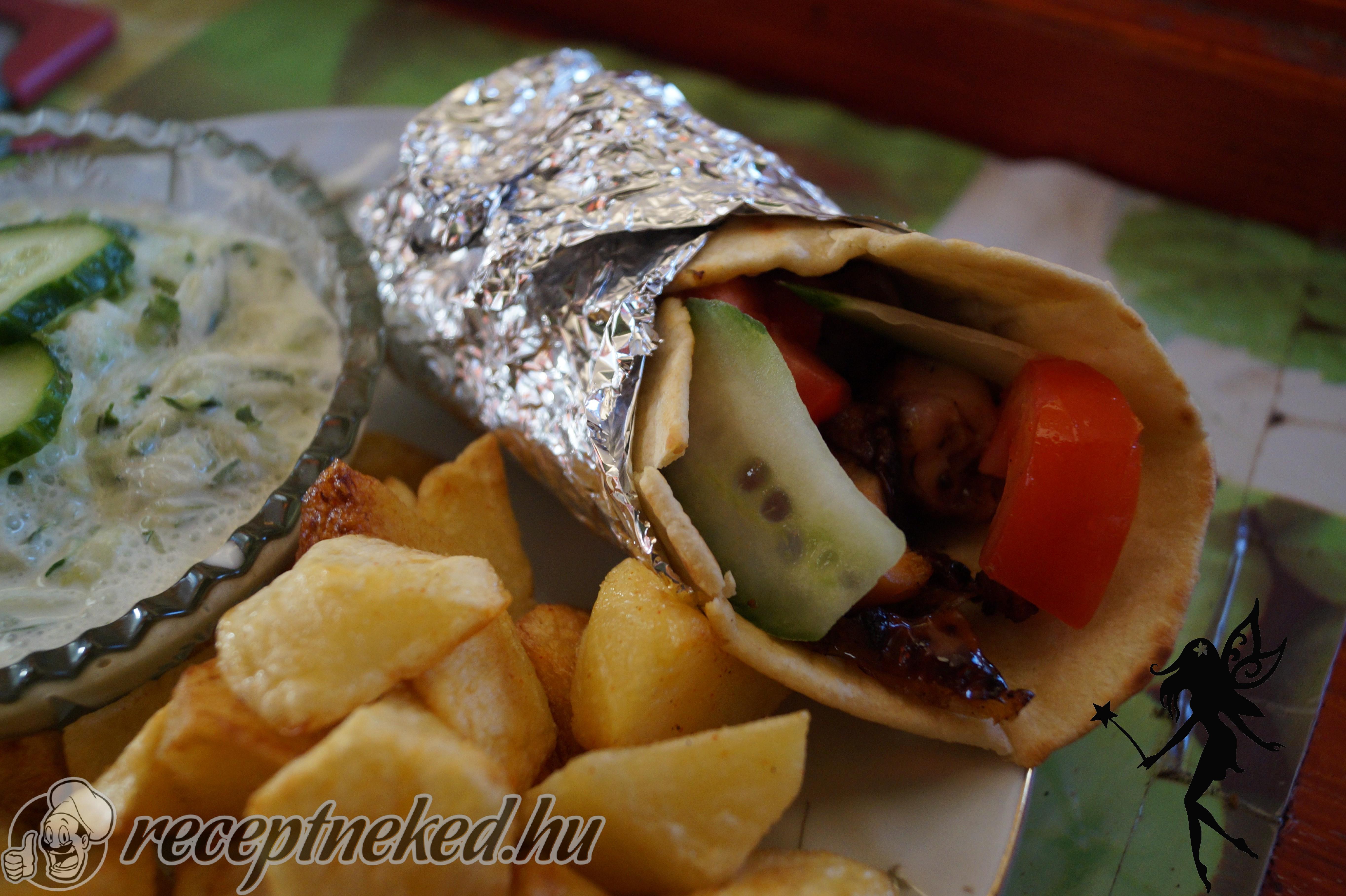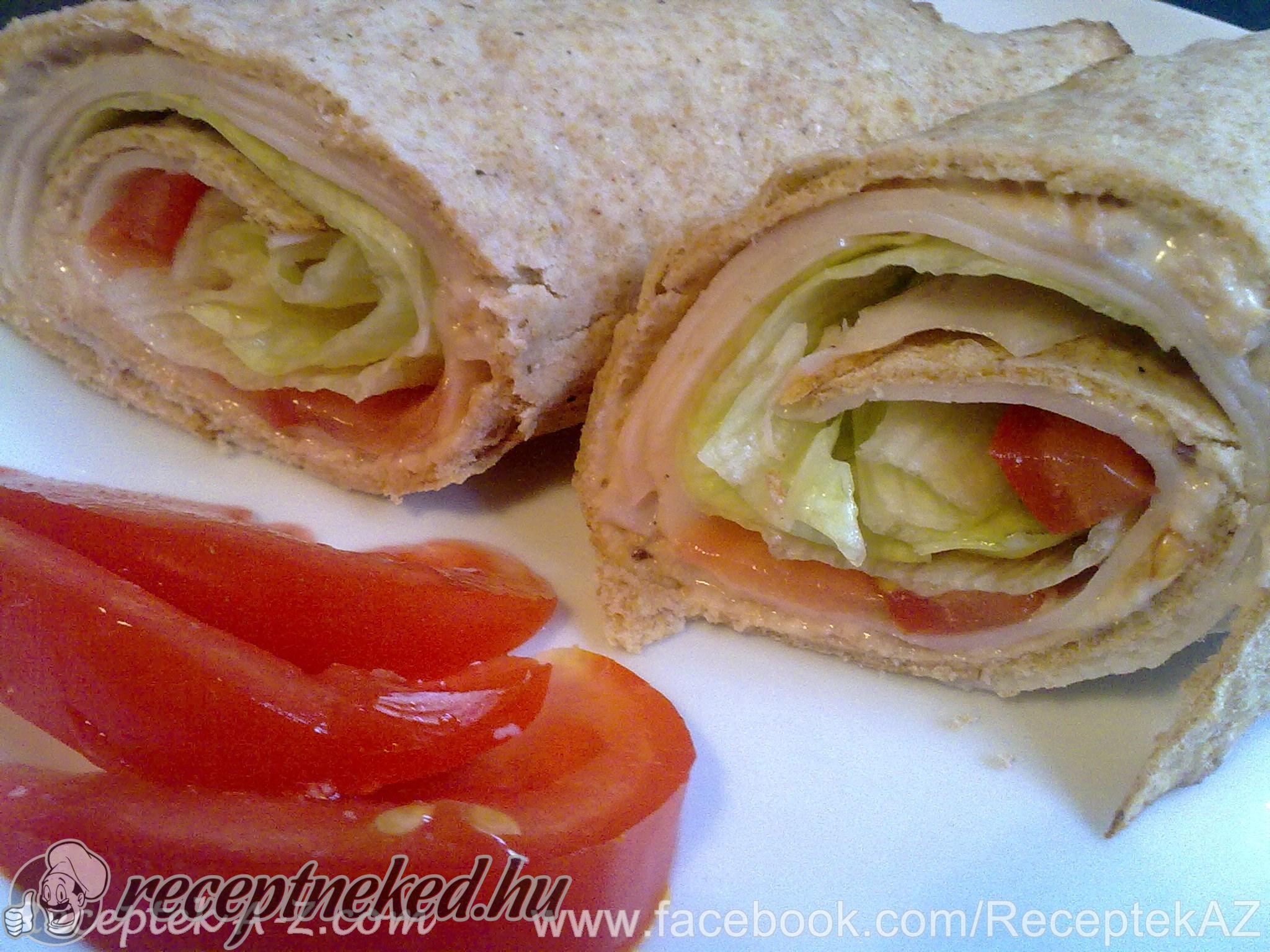 A lapot megkenjük a joghurtos mártással, teszünk rá a mexikói konzervből, majd néhány szelet paradicsom és uborka. Erre a rántott pulykamell csíkokat tesszük. A tortilla lap két oldalát középre behajtjuk és fogpiszkálóval összefogatjuk középen. Tálaláskor friss salátát kínálunk mellé, lecsorgatjuk kevés joghurtos mártással.